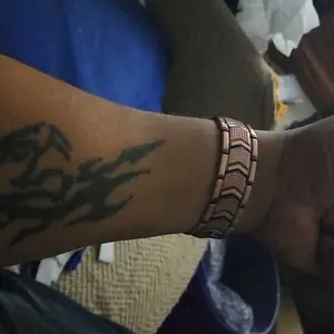 Looks even better In person. Getting compliments every time I wear it. I have not taken it off shin r I got it. Really hoping for some joint pain relief and better sleep. Only been one day