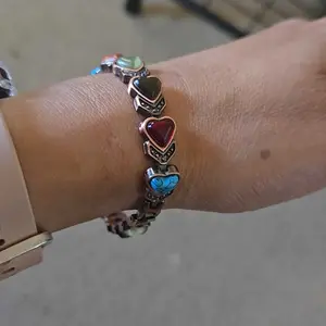 Love my beautiful bracelet I love the colors. The heart shapes, and I also love that they give you the tools you need to adjust the size.