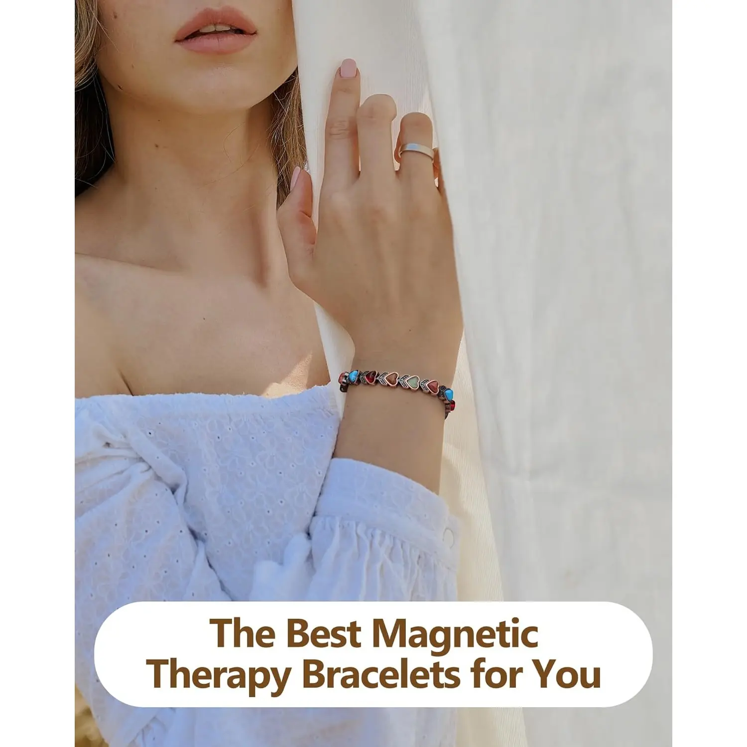 Gorgeous bracelet love ❤️ it! However it has large gap at wrist, but does come with tools to adjust, those tools not for me, because to difficult #meonly! This will fit small to large wrist. Now I'll have to test to see if it helps with my back spasms, normally mags do.