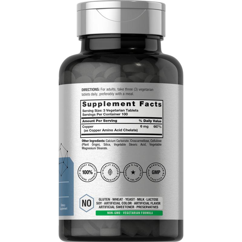 Horbaach Chelated Copper supplies 6mg of Copper (as Amino Acid Chelate) per serving, providing maximum absorption and bioavailability in vegetarian tablets. Our formula is purity and potency tested to ensure exceptional quality, making it the best choice for a healthy lifestyle.