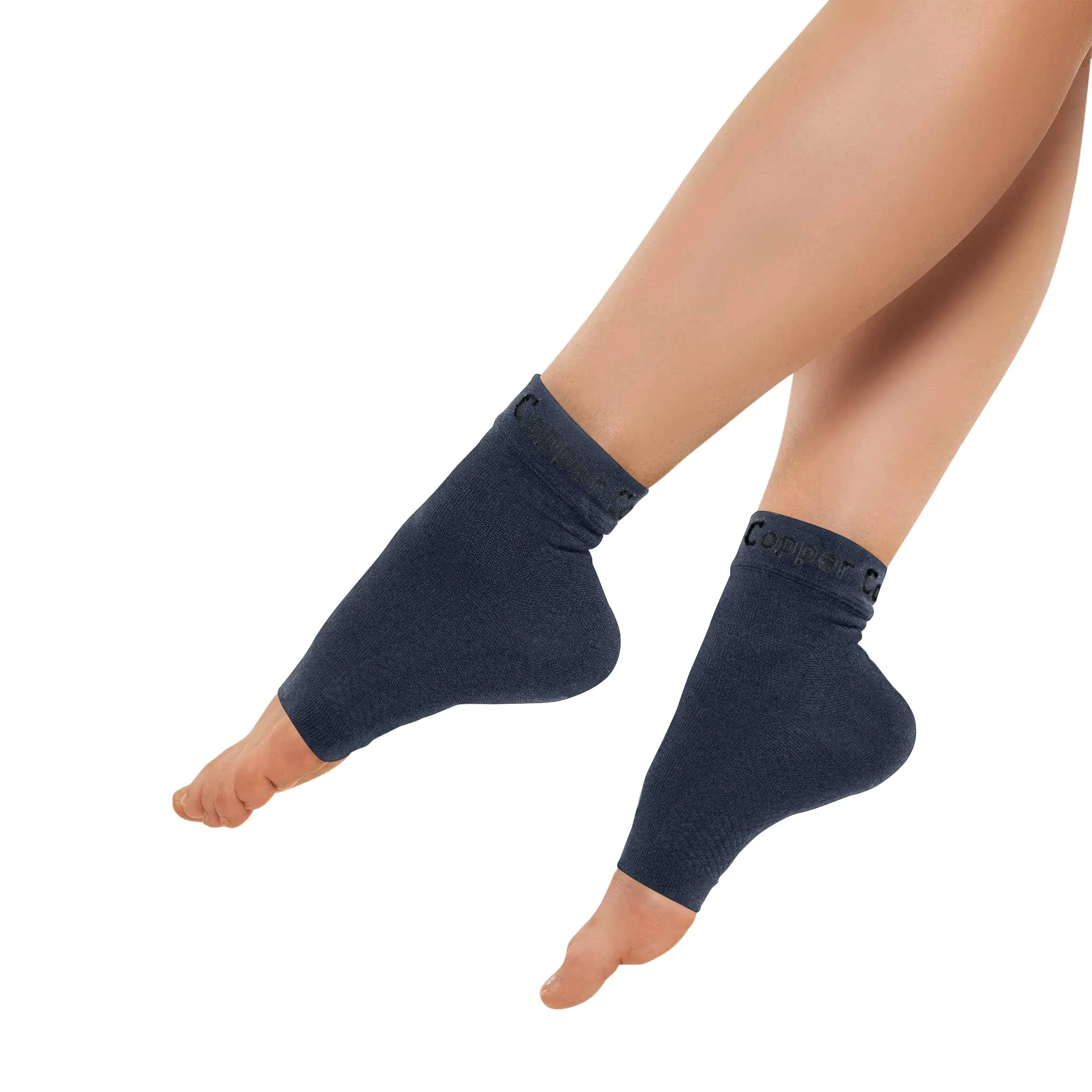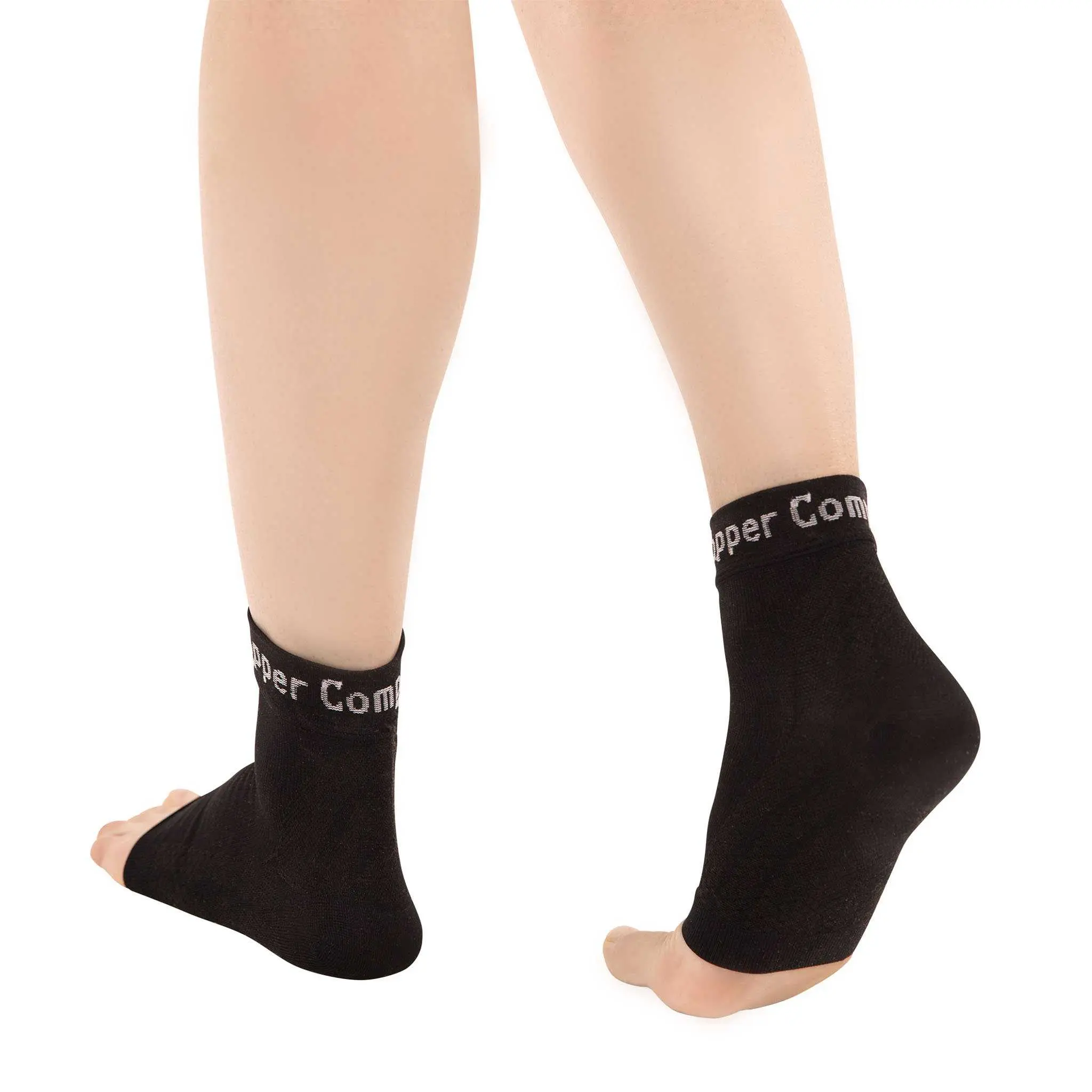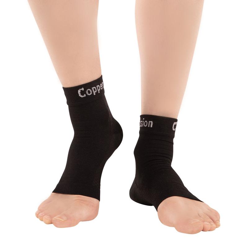 Introducing our copper-infused sleeves, designed to help you achieve your fitness goals. These sleeves are perfect for those who need extra support during training. The targeted compression in the sleeves helps to keep you stabilized by placing consistent pressure on the arches, ankles, and heels. This can improve your performance and prevent injuries.
