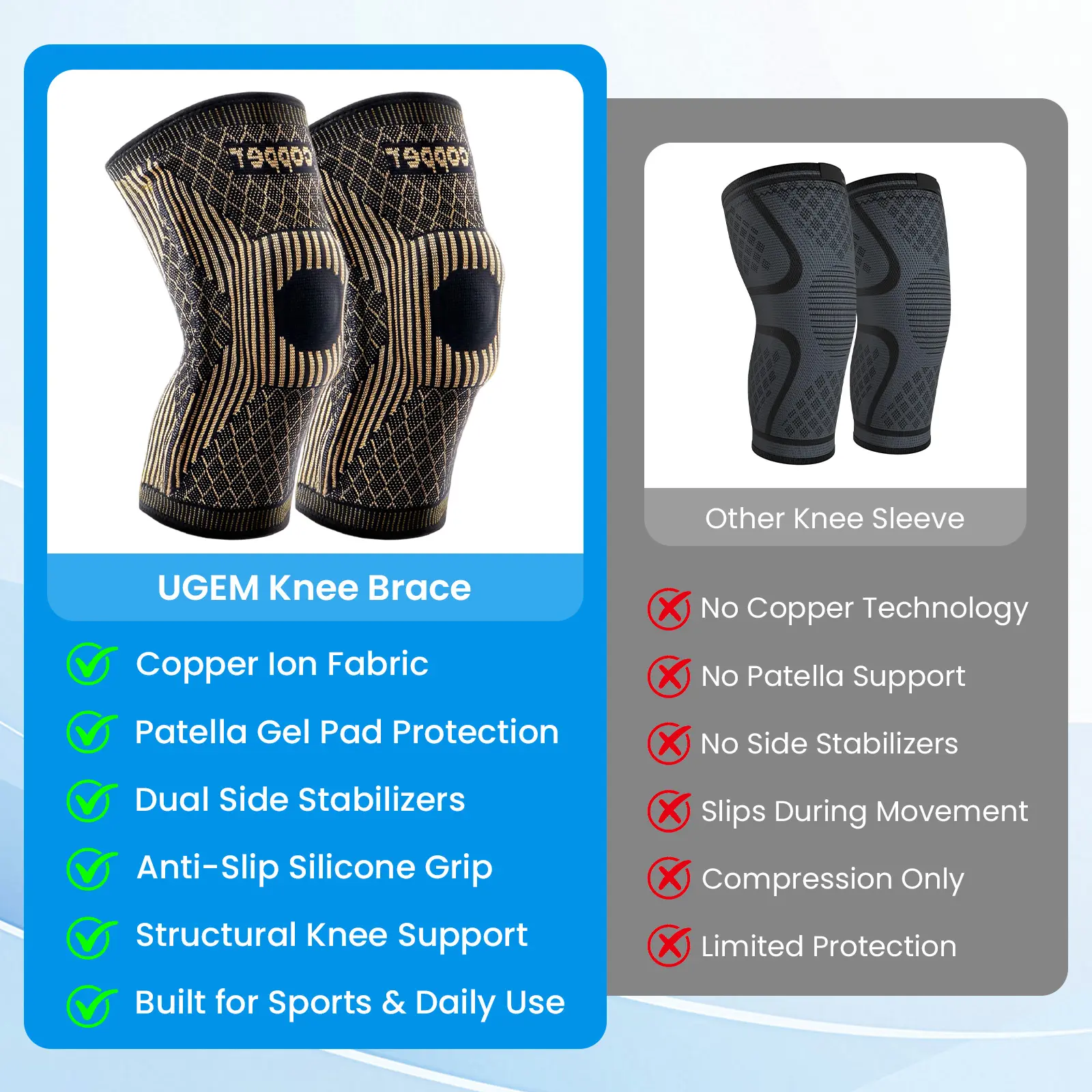 UGEM presents the 2026 NEW Copper Knee Braces, ideal for men and women. These compression knee sleeves come with patella gel pads and side stabilizers. Perfect for meniscus tear, ACL, and arthritis relief. Suitable for running, basketball, and gym workouts. 🏀🏋️♀️