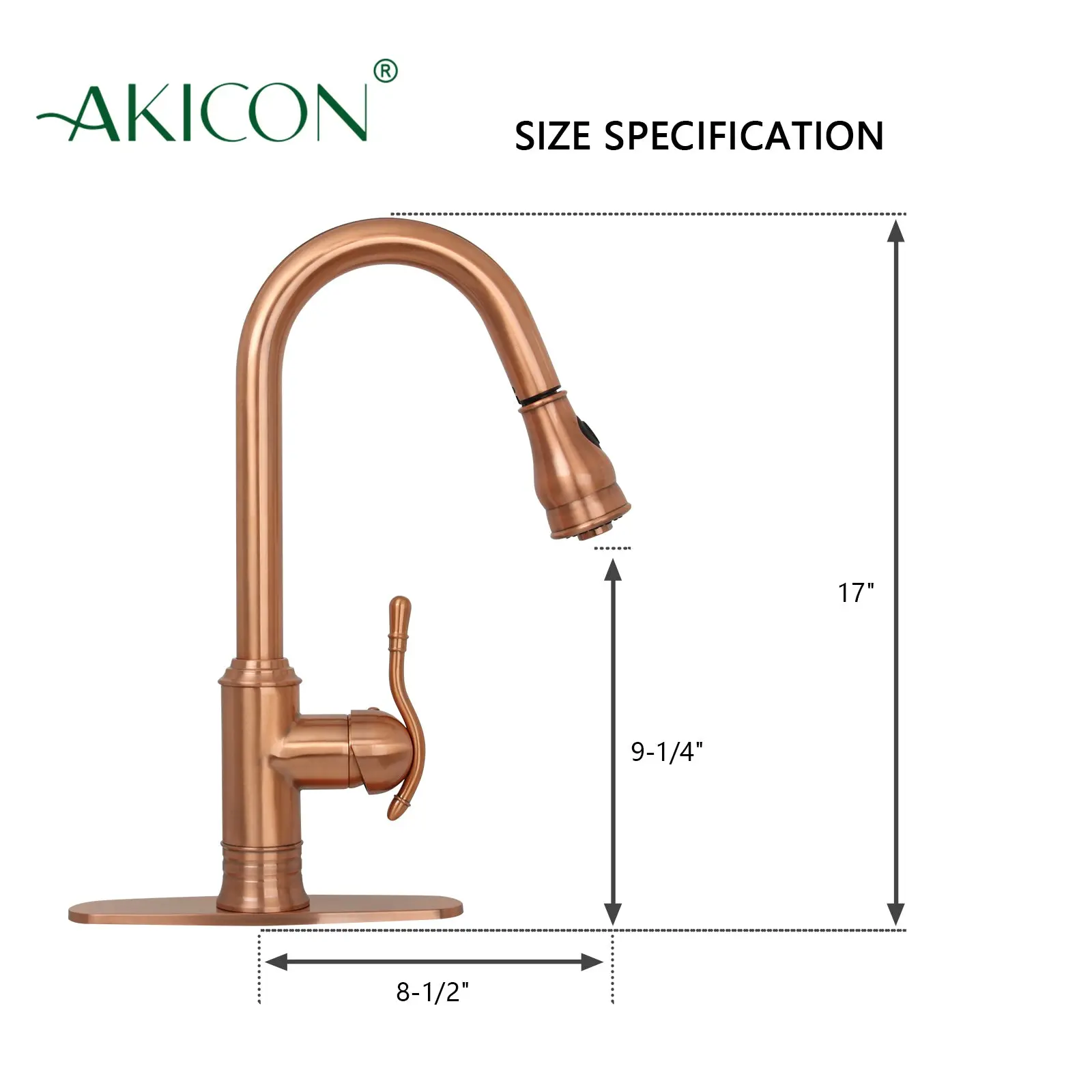 Copper Pull Out Kitchen Faucet, Single Level Solid Brass Kitchen Sink Faucets with Pull Down Sprayer - AK96415-D-C