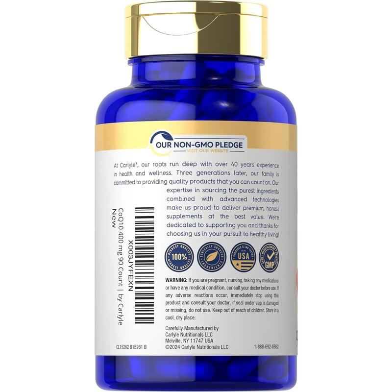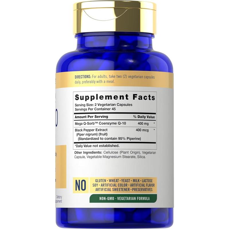 Co-Q10 can be obtained from nutritious foods in trace amounts, however a supplement in the form of liquid, bulk powder, tablets, gummies, softgels, chewables, and capsules can now help provide the support you need. At Carlyle our extra strength formula delivers 400 mg per serving of potent Co-Q10 in vegetarian capsules.