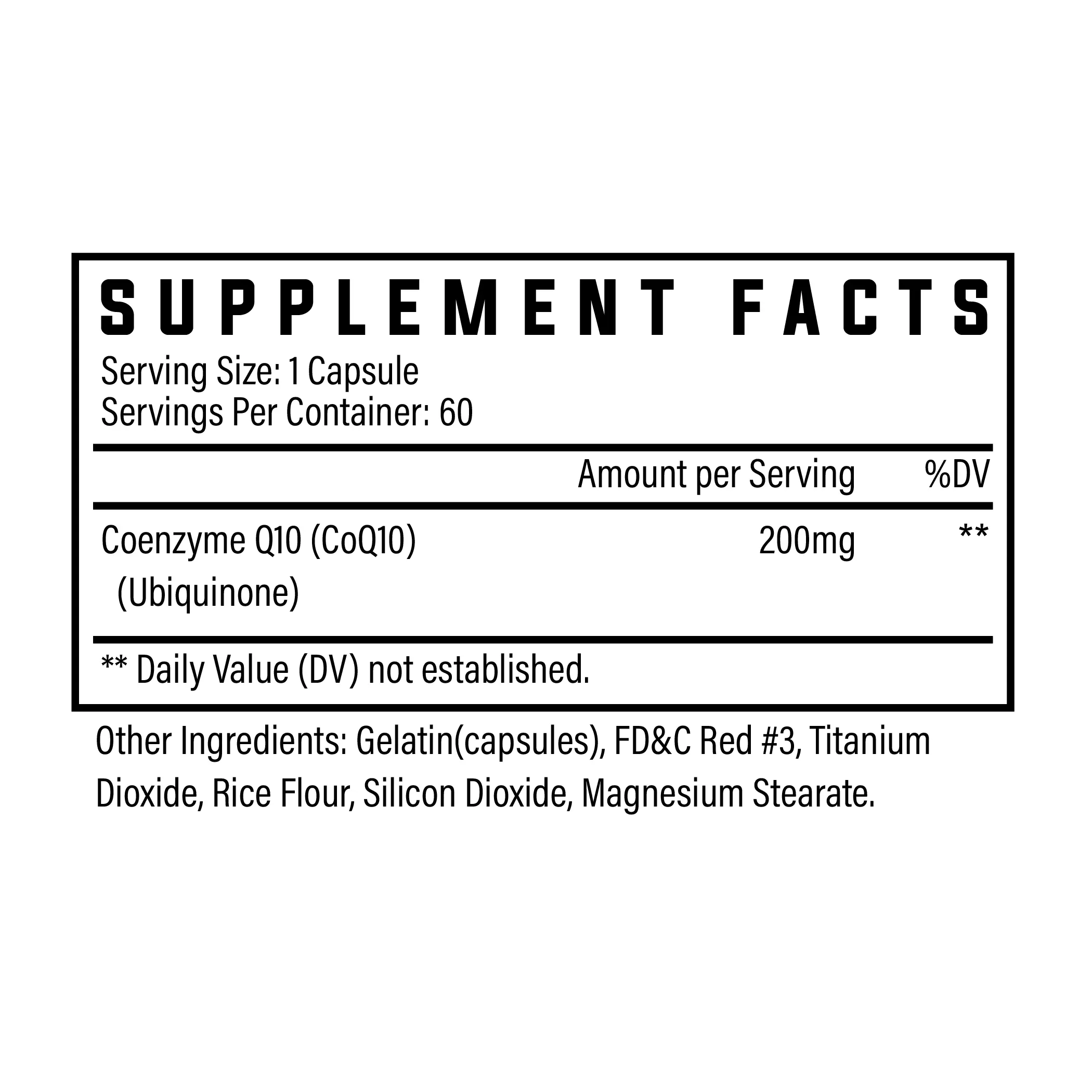 Each serving of our CoQ10 supplement contains 200mg, offering a science-backed dose. This amount ensures you receive the optimal amount of CoQ10 for its health benefits. With 60 servings, you get ample opportunity to support your health goals.
