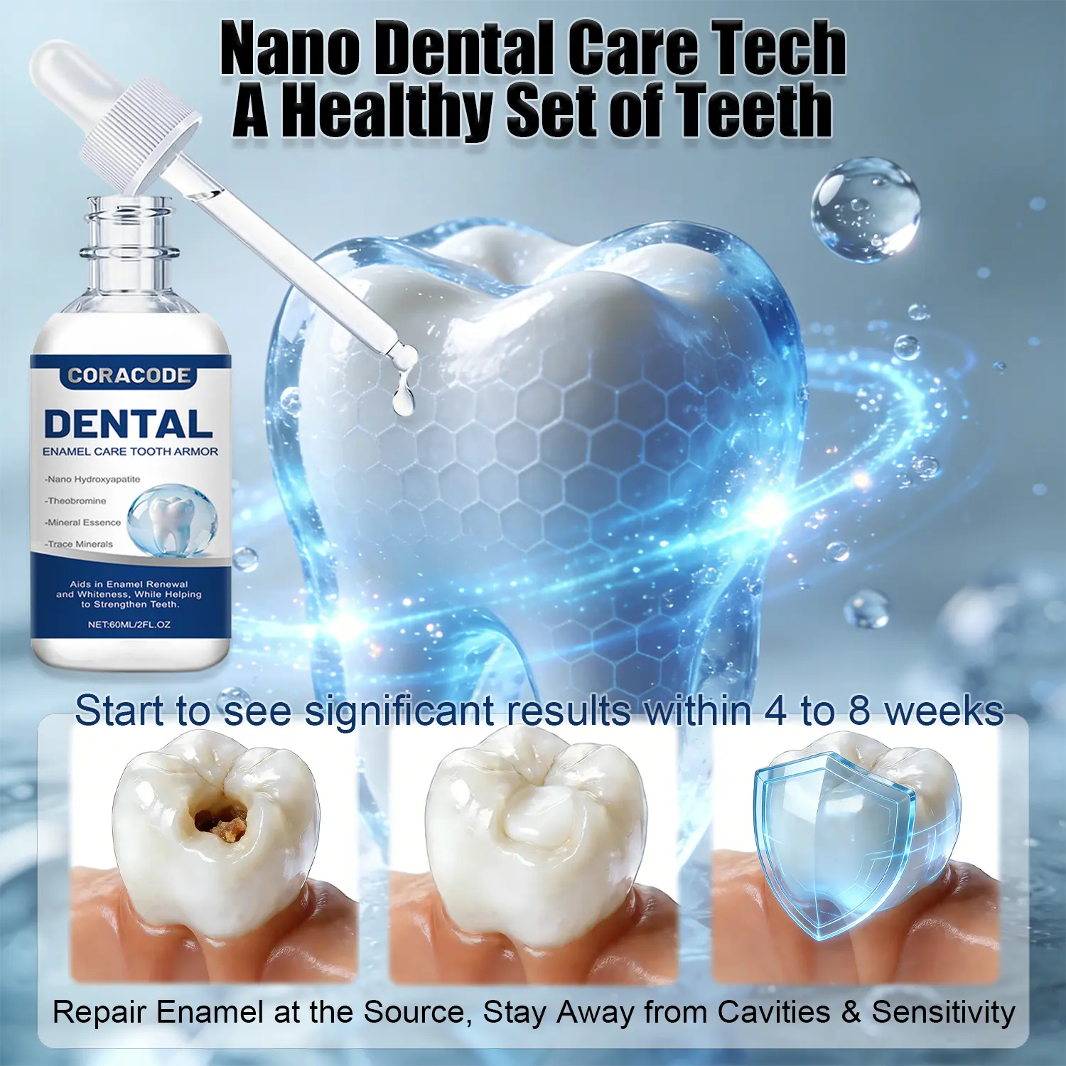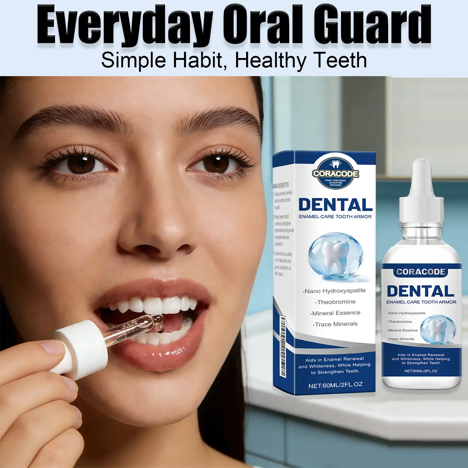 Upgrade your daily oral routine with Tooth Armor Liquid, a gentle yet advanced enamel-support solution designed for everyday use. Powered by Nano-Hydroxyapatite and Theobromine, this innovative liquid helps reinforce tooth surfaces, smooth micro imperfections, and support a naturally glossy, healthy-looking smile—without harsh chemicals.