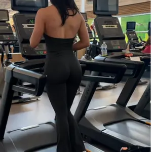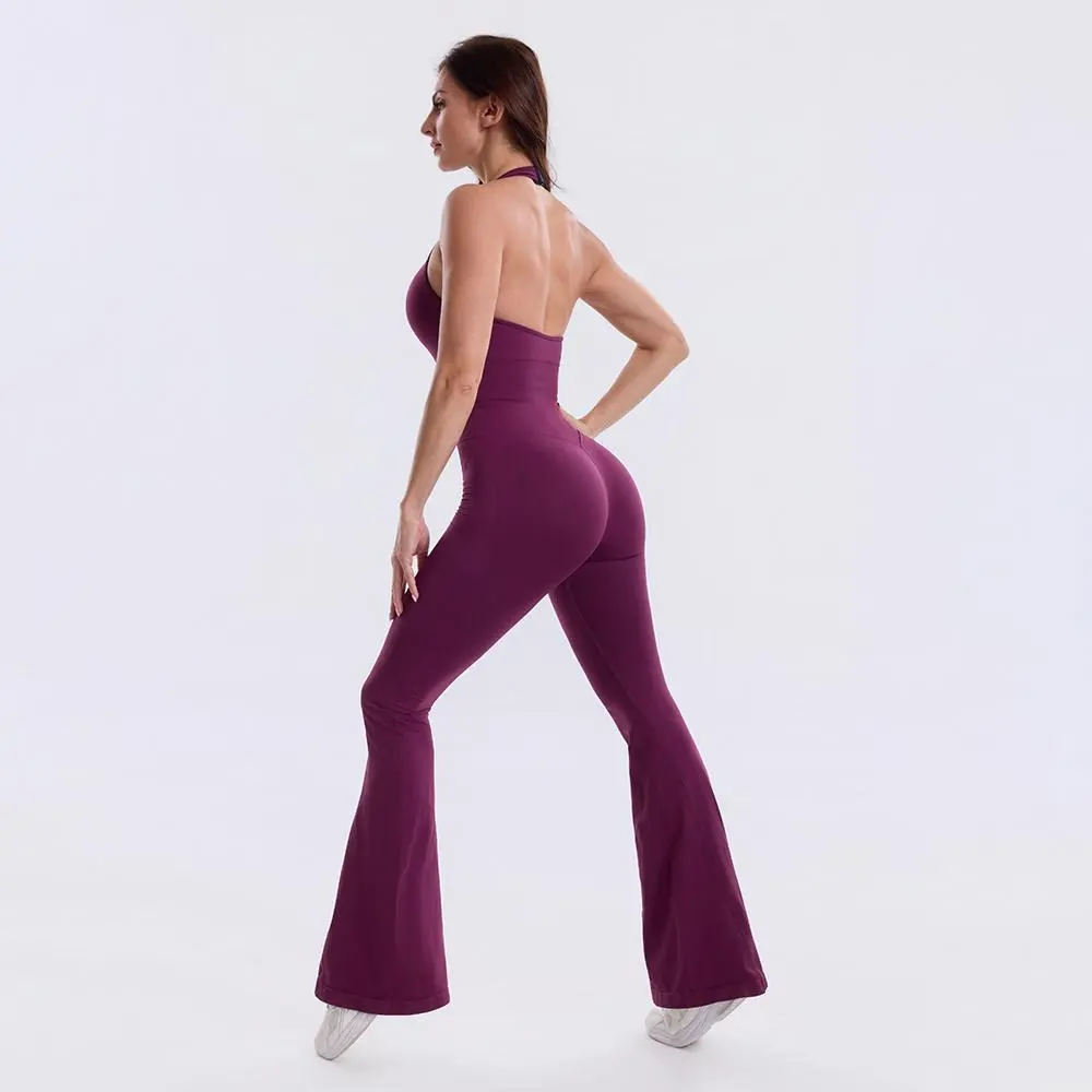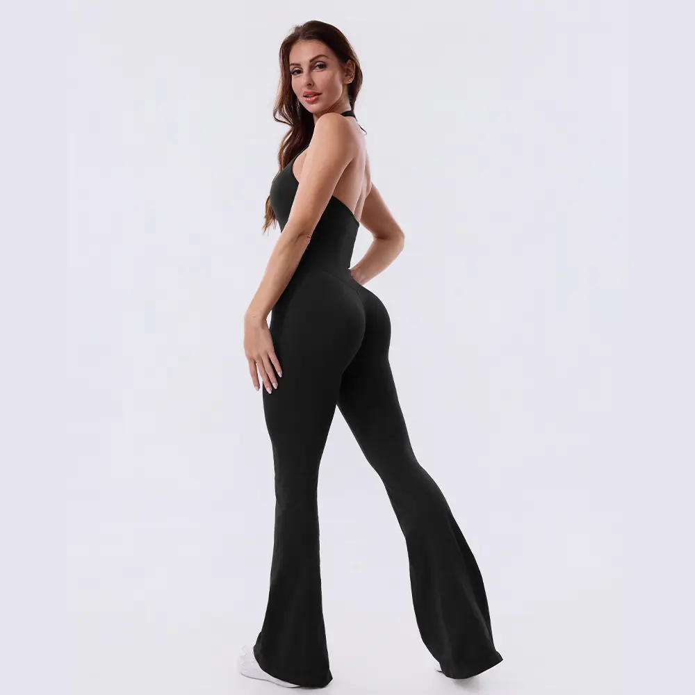 V-Neck Backless Flared Jumpsuit—One-piece design easy to wear and perfect for busy days
