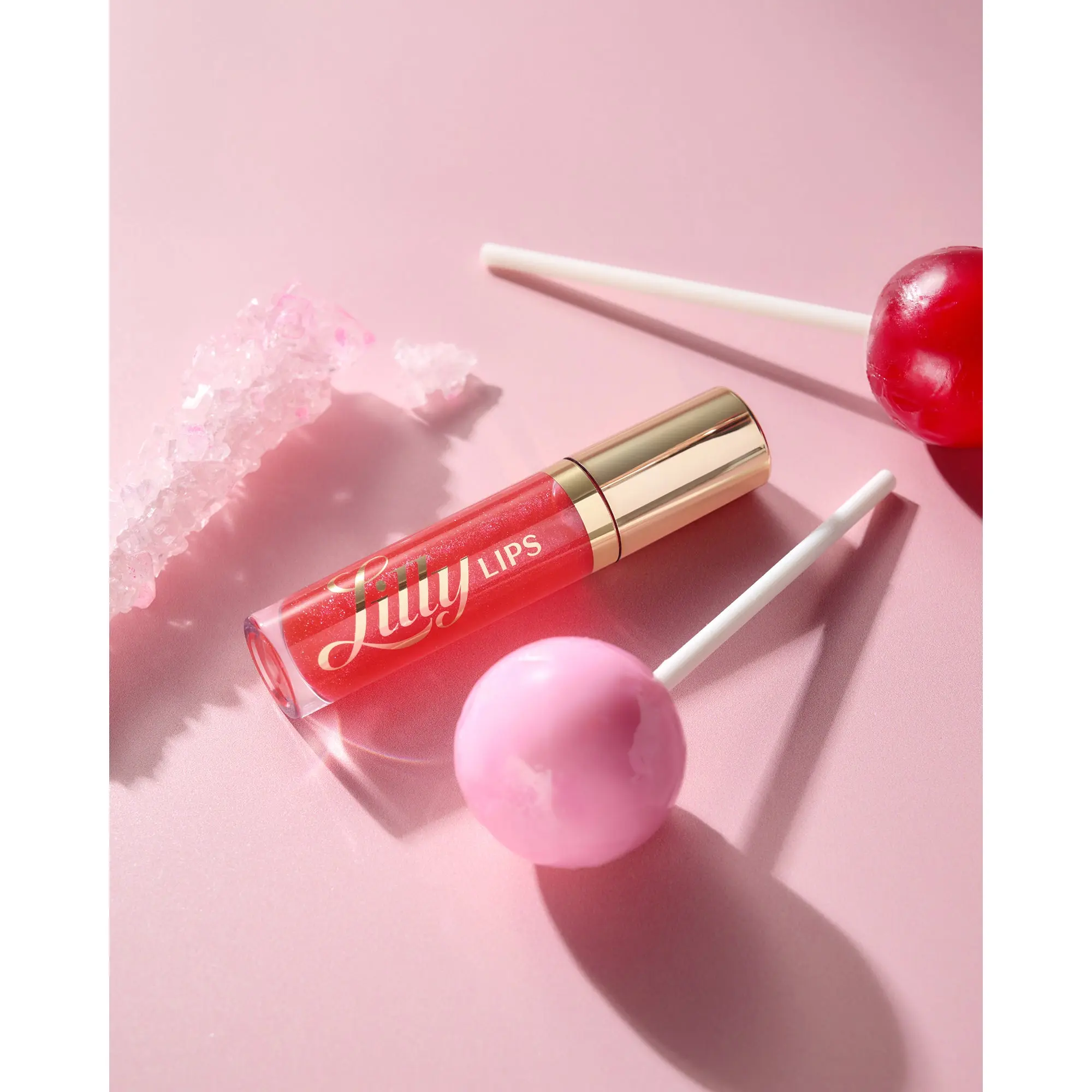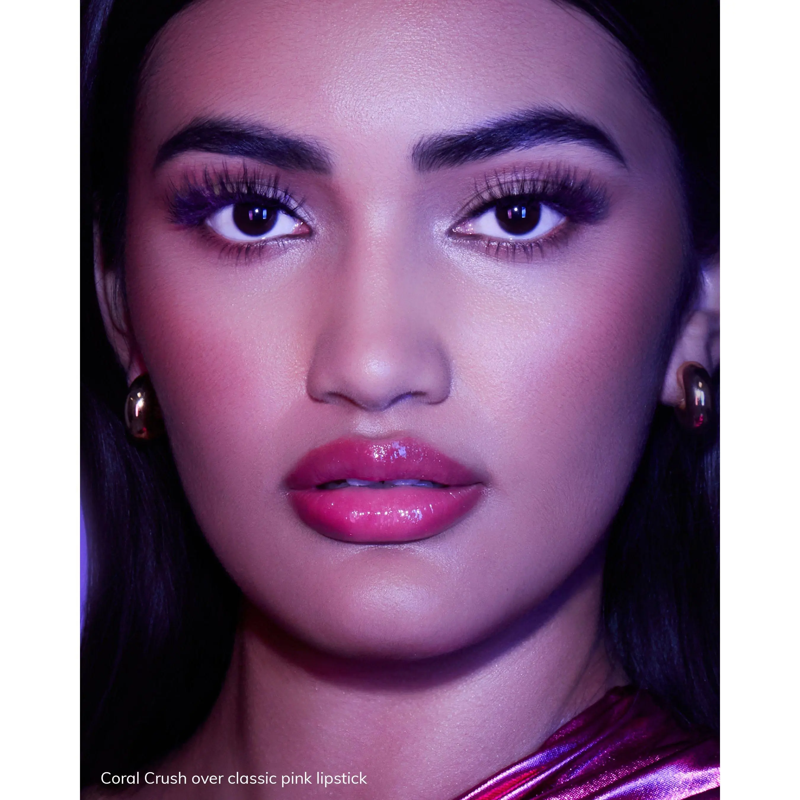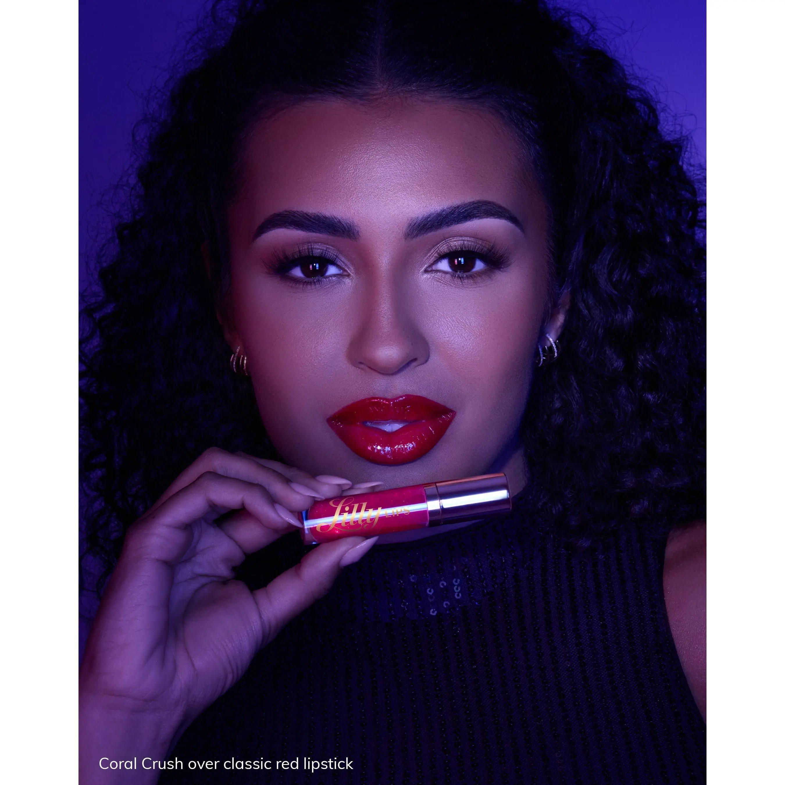 is a sheer coral gloss with golden shimmer that catches the light (and every eye in the room). Pair it with pink, red, or nude lipstick or liner, a Lilly Self-Adhesive Lash, and your flirtiest energy on full display.