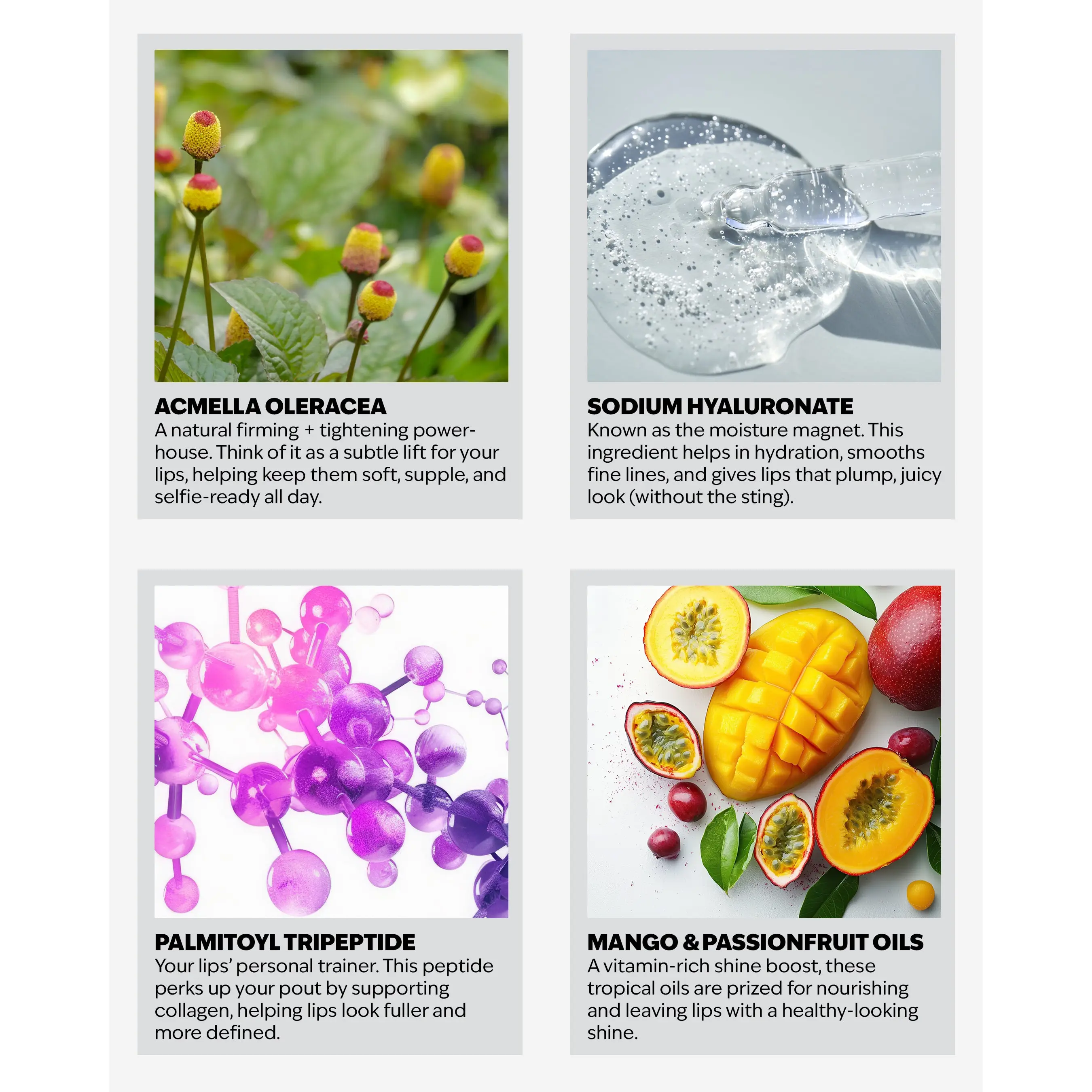 ·Powered by nature — mango + passionfruit oils and plant peptides help keep lips looking healthy and full of life.
