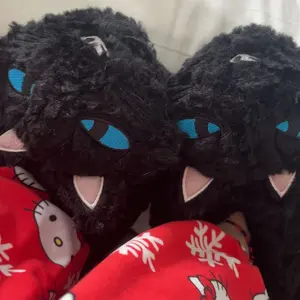 Crafted from 100% polyester with all-new materials, these slippers are both soft and adorable. Shaped like The Cat, they feature a faux fur exterior, complete with perky ears and embroidered eyes on the front, capturing the character's mysterious charm. The fiber-filled interior ensures warmth and comfort, while the foam cushy soles provide plush support with every step. For added safety, the bottom soles are equipped with anti-slip grips, making them ideal for walking on various surfaces.