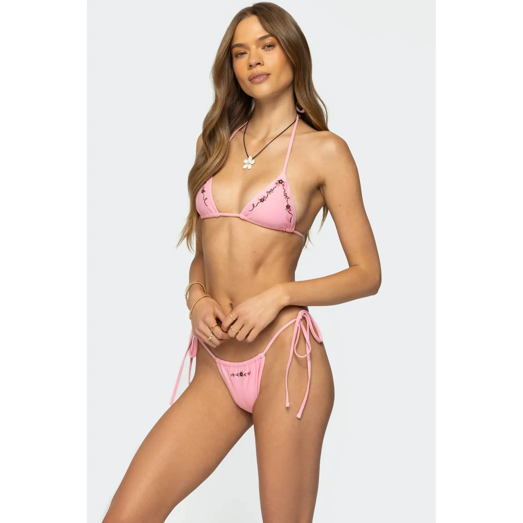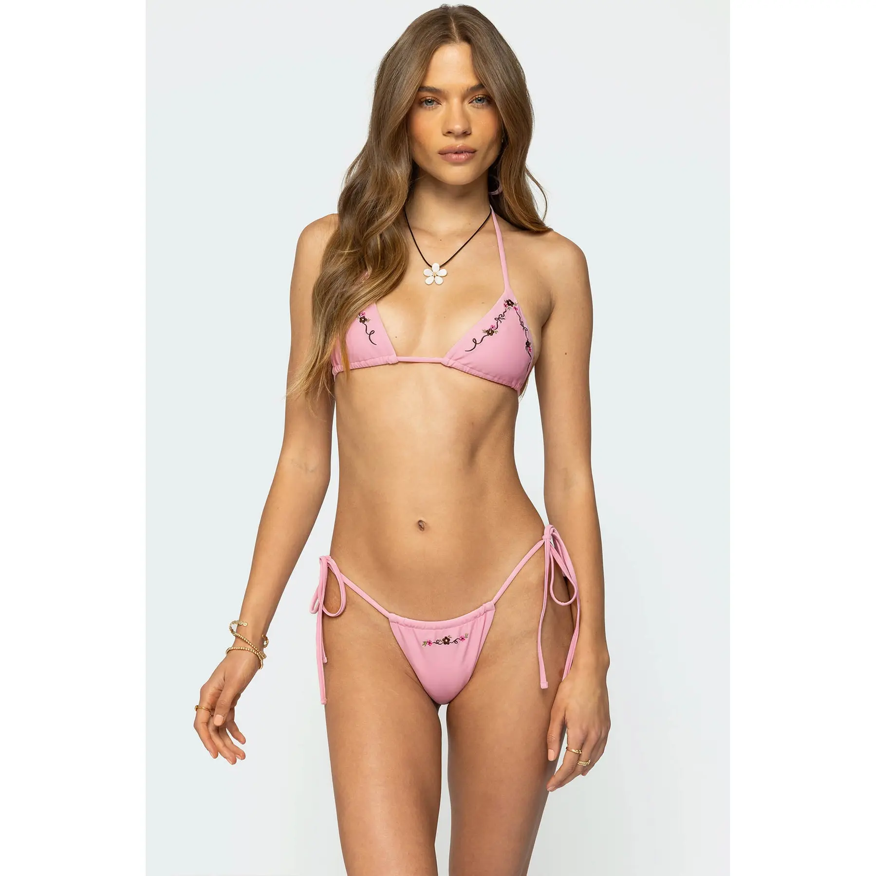 ·Embroidered floral detailing