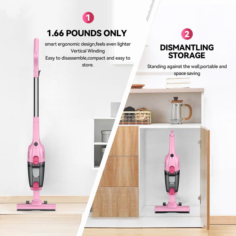 With a cord length of 16.48ft, Suitable for hard floor, low-pile carpets, tiles and other floors, to meet all your cleaning needs. You can use the upright vacuum as a lightweight handheld vacuum. Great for cleaning sofas, furniture, tight spaces, stairs and more.