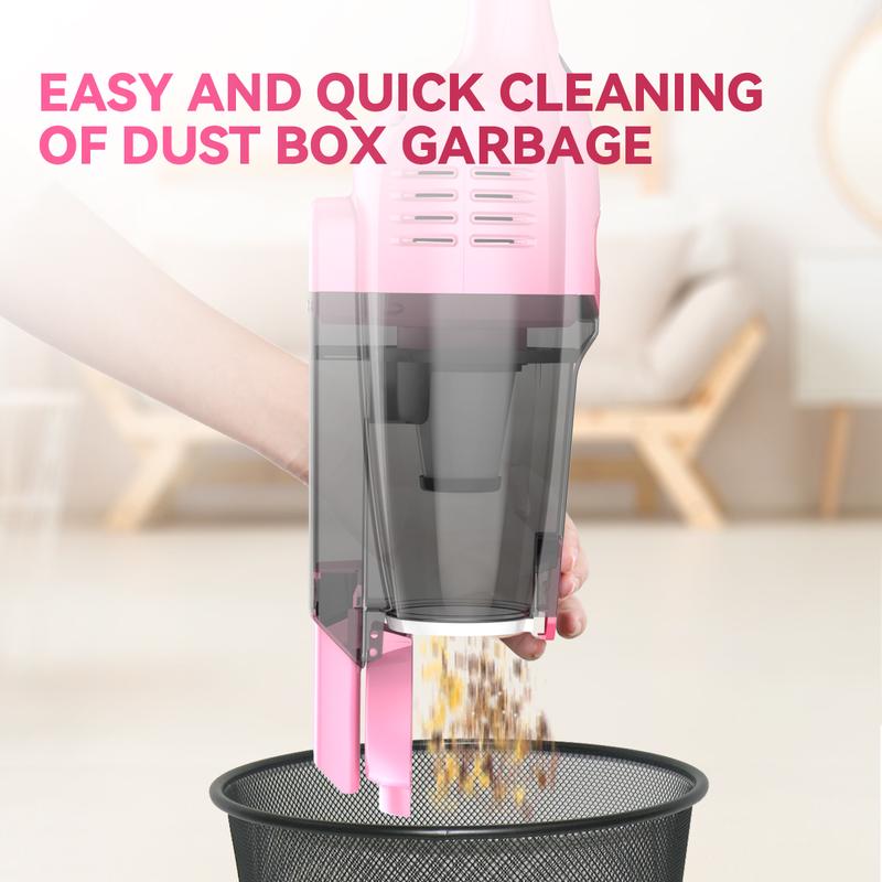 The 0.8L dust cup provides generous space for collecting dirt and debris, so you can quickly dispose of its content without frequent trips to the dustbin.With just one click, the corded vacuum starts up, eliminating the need to continuously hold down the power button. Emptying the 0.8L large dust cup is as simple as a single press, without making your hands dirty.