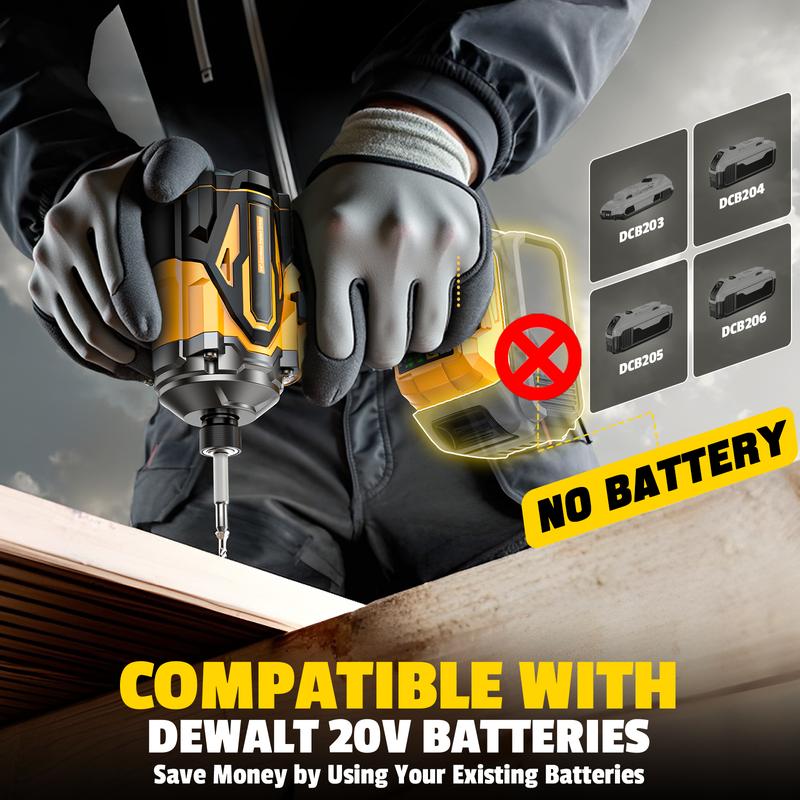 ·【BATTERY NOT INCLUDED】Compatible with DEWALT 20V Batteries: Enjoy cordless freedom with this 1/4” impact driver, compatible with all DEWALT 20V Max lithium-ion batteries. A built-in battery status alert keeps you informed, so you’re never caught off guard in the middle of a task—ideal for mobile work and DIY tool setups.