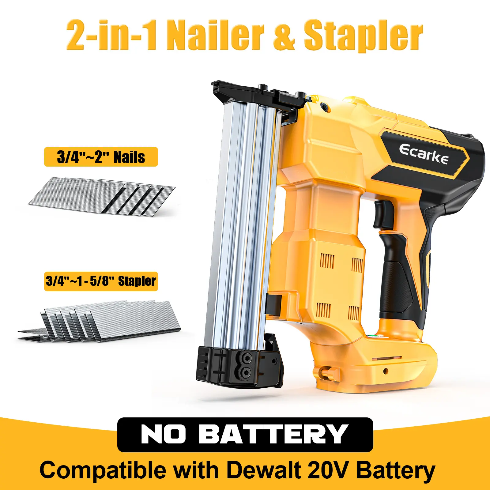 1. This cordless Brad Nailer does not include any batteries! It is compatible with Dewalt 20V Lithium-ion batteries.