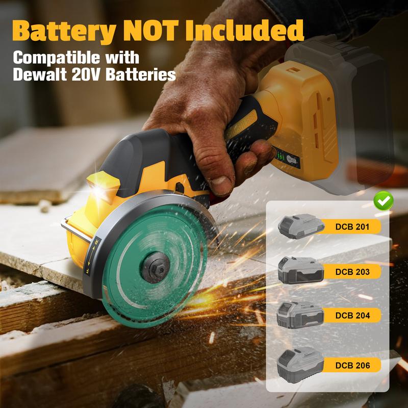 1. This cordless Cut-Off Tool does not include any batteries! It is compatible with Dewalt 20V Lithium-ion batteries.