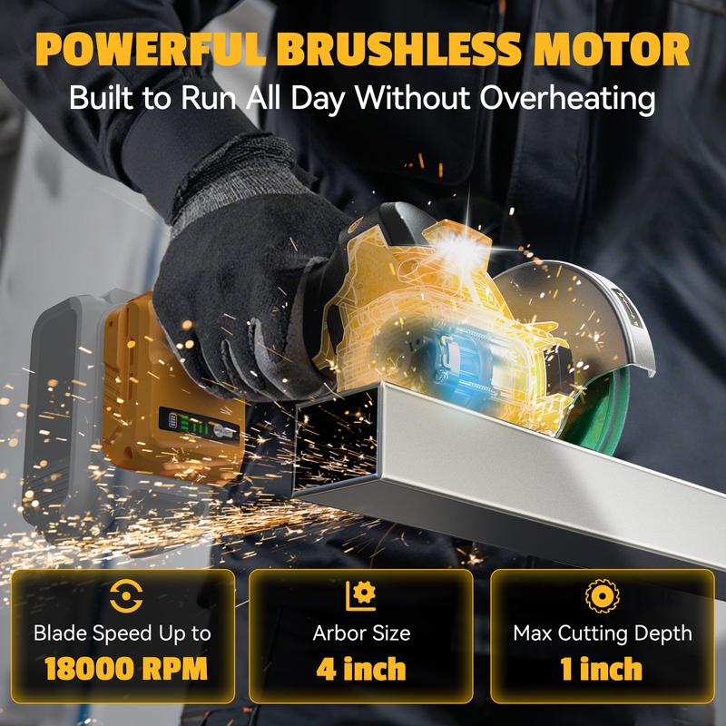 5. 4" Cordless Brushless Cut-Off Tool Compatible with DeWalt 20V Battery, 【Battery NOT Included】, with 4pc 4" Blades for Metal, Wood, Tile & Plastic