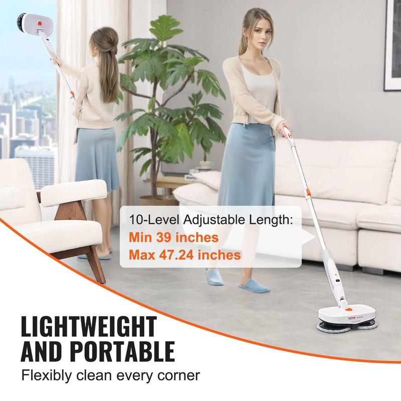 5. VEVOR Cordless Electric Mop Sweeper, Electric Spin Mop with Water Tank, up to 40 mins Battery, LED Headlight, Dual Mop Heads, 4 Microfiber Pads & 4 Trapezoid Microfiber Pads, for Hardwood/Tile Floor
