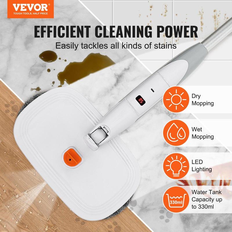 Our electric mop, with its unique double mop head, effortlessly tackles tough stains. Its LED lighting and spray wet mopping double your cleaning efficiency in a snap.