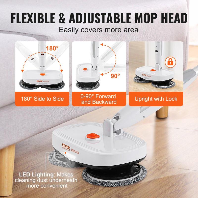 ·Flexible Mop Head: With its 10-level adjustable length, the electric spin mop extends to fit your space. Swiveling up to 180° sideways and 90° backward, it locks upright for those tricky nooks and crannies. Cleaning has never been this easy or fun!