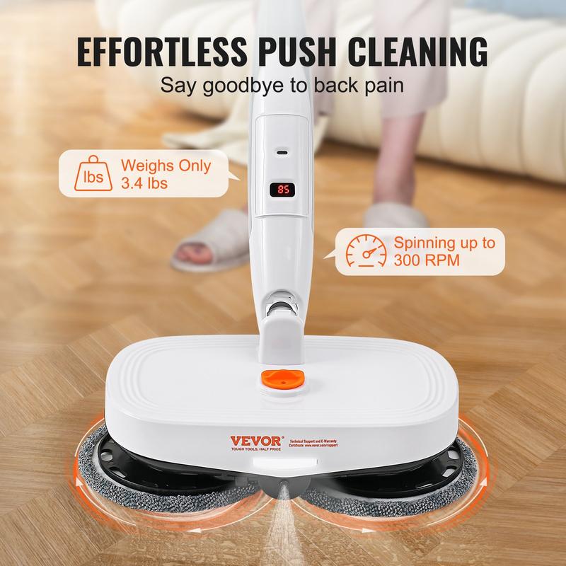 5. VEVOR Cordless Electric Mop Sweeper, Electric Spin Mop with Water Tank, up to 40 mins Battery, LED Headlight, Dual Mop Heads, 4 Microfiber Pads & 4 Trapezoid Microfiber Pads, for Hardwood/Tile Floor