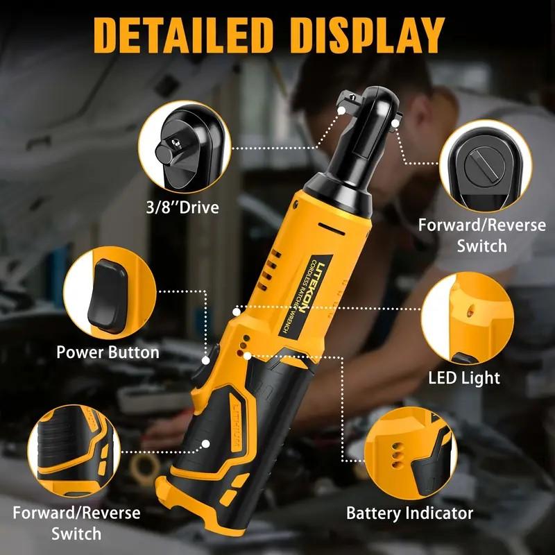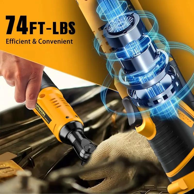 [Power Ratchet Wrench]Our cordless ratchet wrench with a max torque of 74 ft-lbs and a variable speed trigger, making it a perfect tool for construction, auto repair, and even home repair work.