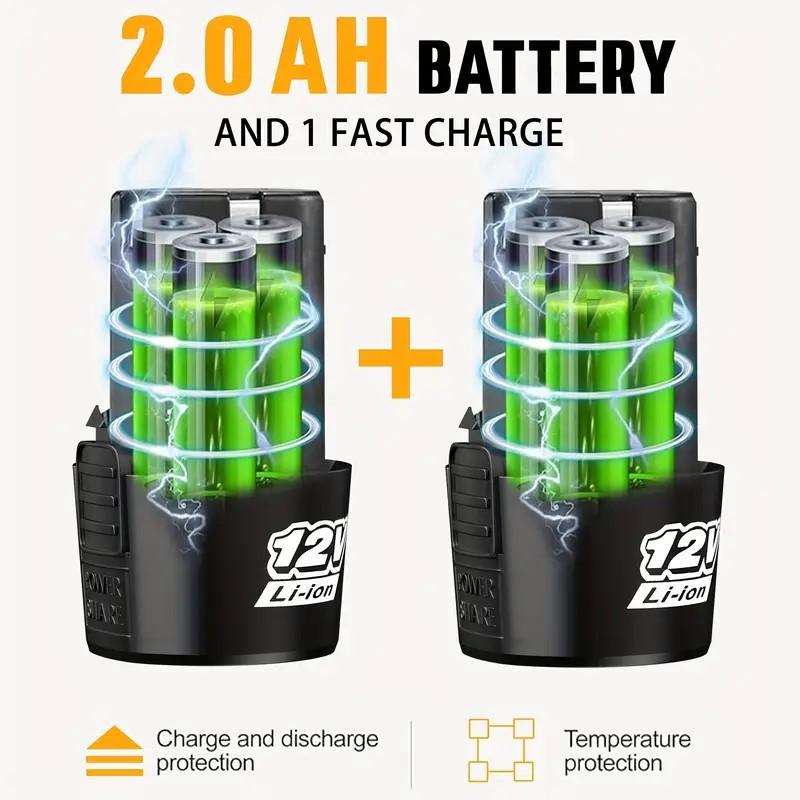 [2 Battery & Fast Charger]Cordless ratchet wrench comes with one rechargeable 2000 mAh battery which can be fully charged fast. Rechargeable battery can make your work more efficiently.