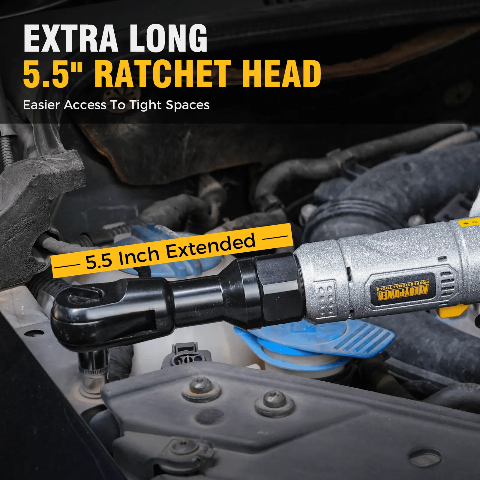 ·【COMPACT & EXTENDED HEAD】Extended ratchet with a 5.5" long neck profile and an ultra-slim 3/8" compact head designed for removing or installing nuts and bolts in tight work environments. Soft rubber handle is non-slip and comfortable to the touch, reducing hand soreness after long hours of work.