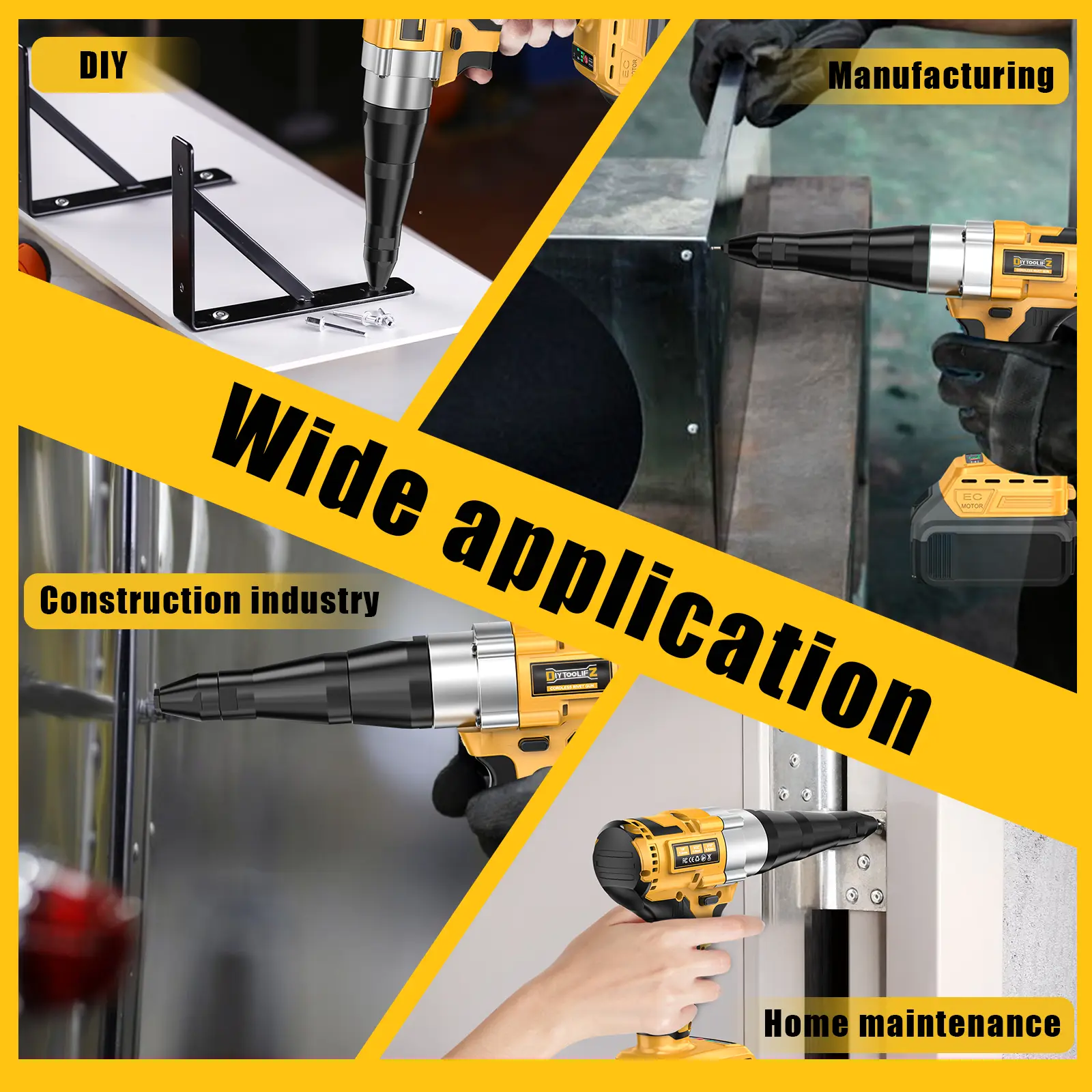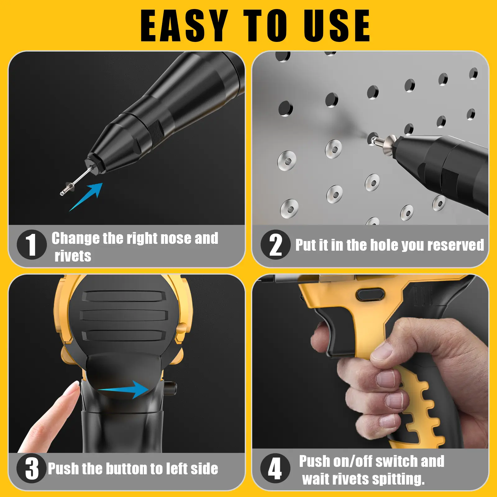 ·Versatile Riveting: Whether you're working with 1/8" or 3/16" rivets, this rivet gun tool handles a wide range of sizes, making it the ideal companion for various projects. From auto repairs to home DIY tasks, this electric rivet gun is versatile enough to tackle them all with precision and ease -ideal for threade drivet nuts and blind rivets in tight space