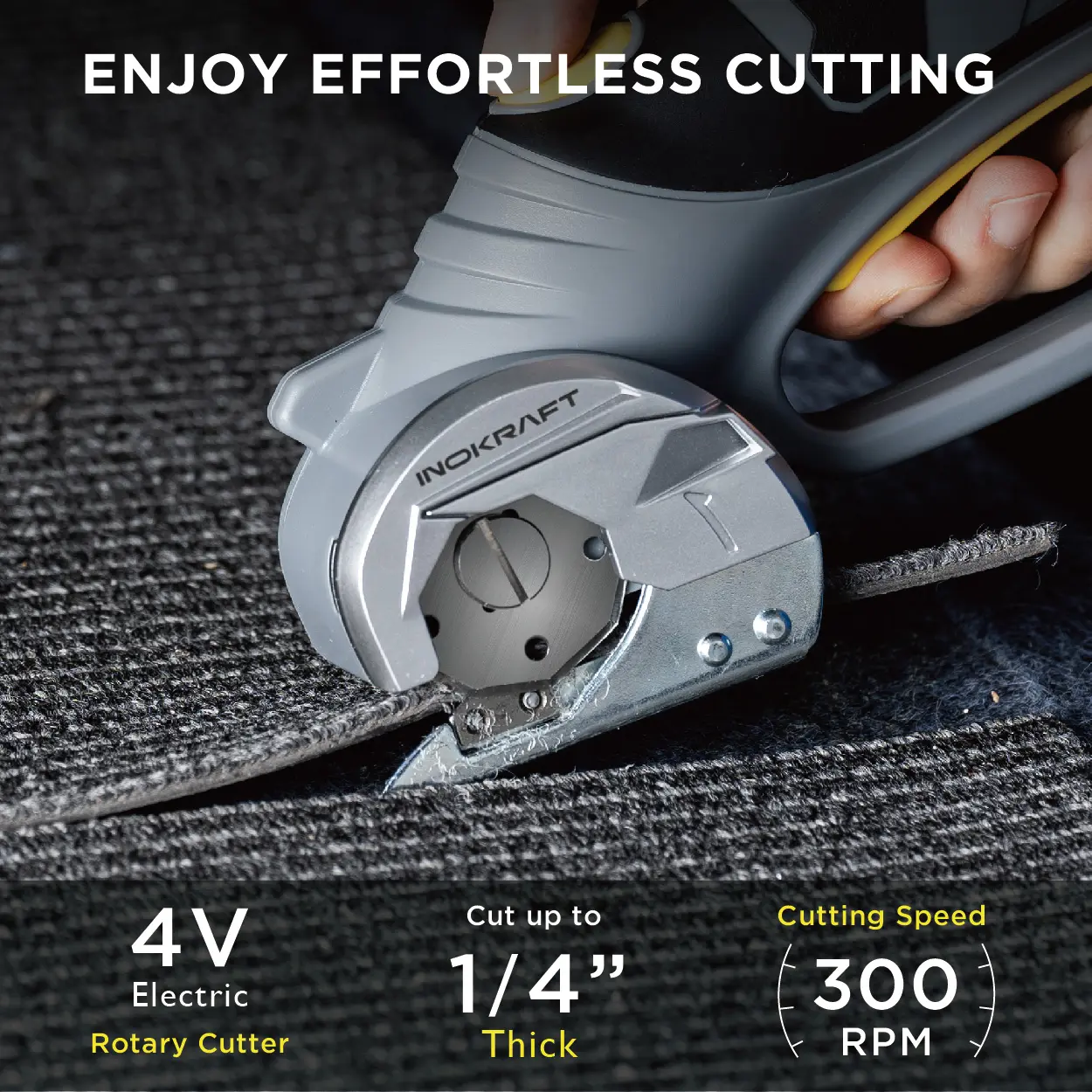 Featuring a 2000mAh rechargeable battery, this cutter delivers up to 300RPM speed, allowing you to cut through materials smoothly and efficiently. Perfect for carpet, fabric, cardboard, leather, and plastic, making it a versatile tool for various tasks.