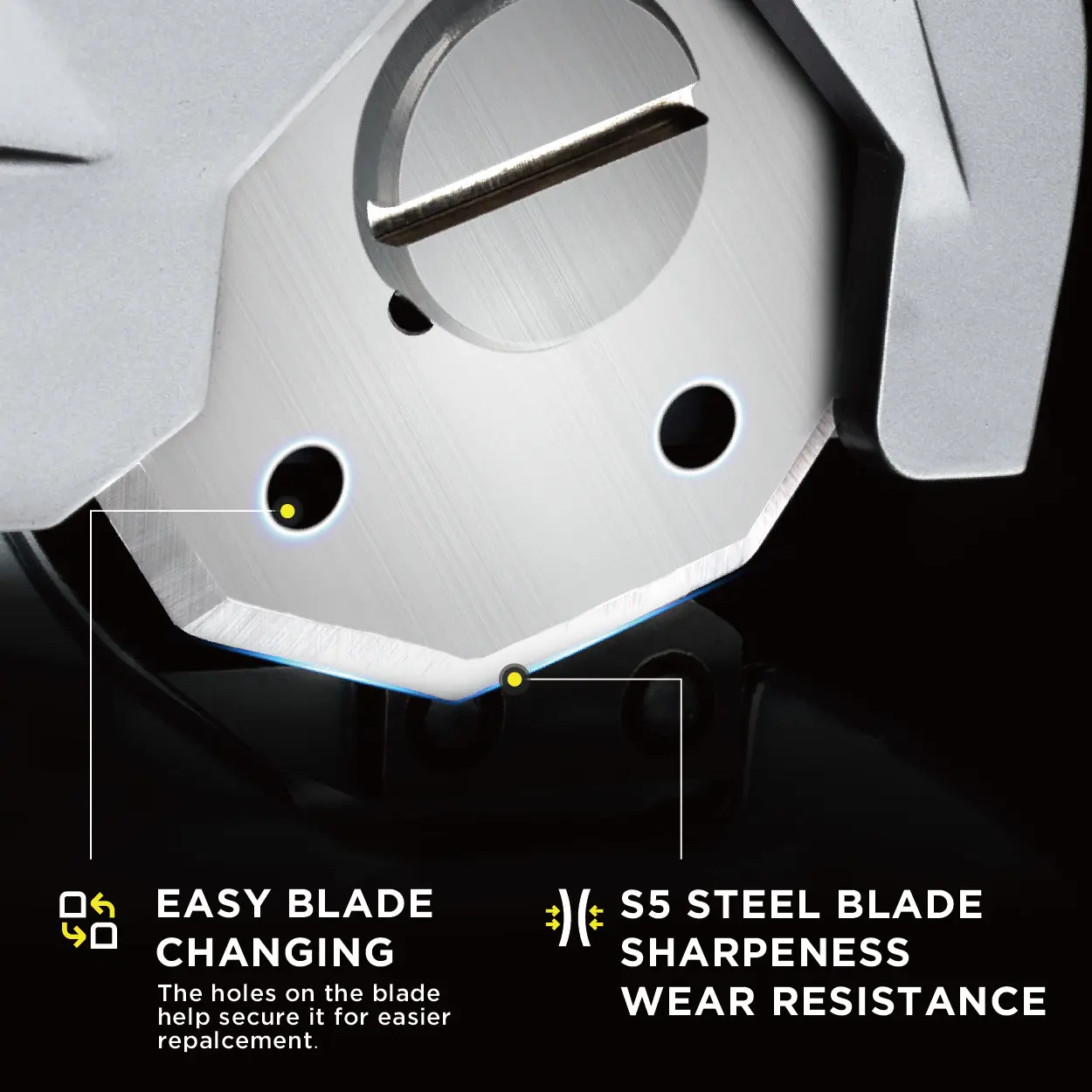 Equipped with S5 steel blades for superior durability and performance. The blades can be easily replaced thanks to the fixed hole design, minimizing downtime and keeping your projects moving forward.