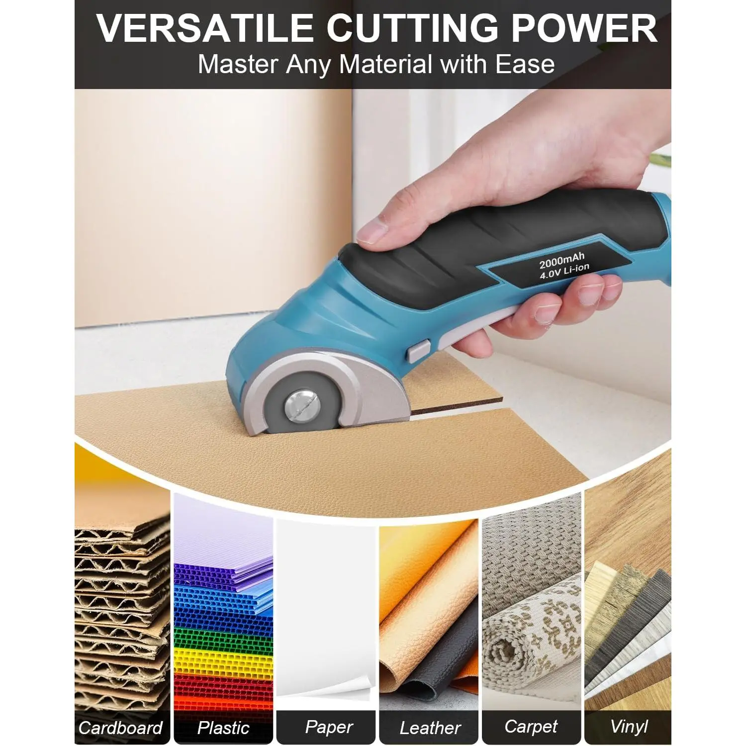 EFFICIENT ELECTRIC CARDBOARD CUTTER - AMZBUY’s upgraded cordless electric scissors feature a 300 RPM cutting speed and a 1/4” cutting capacity. The self-sharpening blade effortlessly slices through various materials, including paper, cardboard, cardstock, corrugated, plastic, cloth, leather, carpet, blanket, vinyl, canvas, denim, fabric, and bubble wrap, faster and smoother than manual scissorsENHANCED SAFETY FEATURE - AMZBUY electric scissors, designed for cutting cardboard, come with a side-mounted safety lock that secures the blades when not in use, minimizing the risk of accidental injuries. They require both the trigger and the lock-out switch to be pressed simultaneously for operation, ensuring safer useSELF-SHARPENING BLADE & DURABILITY - The rotary cutter’s self-sharpening octagonal blade maintains its sharpness over time, extending its lifespan and reducing the need for frequent sharpening. For best results, cut carpets with the plush side down and keep the blade guard area clean for precise and smooth cuts. This long-lasting electric cardboard cutter is ideal for daily use and DIY projectsRECHARGEABLE & VERSATILE - Constructed from high-quality materials (stainless steel blade leather, plastic handle), these compact and lightweight (only 0.86 lbs) power shears are built to last, providing long-term durability without fatigue. Tips: During charging, the tail indicator light is red, turning green when fully chargedIDEAL PRESENT - This cordless electric cutting machine has powerful performance and innovative design, providing a unique and practical product for designers, tailors, DIY enthusiasts and craft lovers, the tool is versatile and can handle materials such as paper, cardboard, fabric, plastic, leather, carpet, etc., making it a unique gift for stocking stuffer for men, birthdays, anniversaries, etcPACK CONTENT - Each set comes with an electric scissor, a USB cable, a user manual, and exquisite packaging, making it a considerate and practical product for everyday use. If you encounter any problems with AMZBUY cardboard cutting tools, please do not hesitate to message us at any time