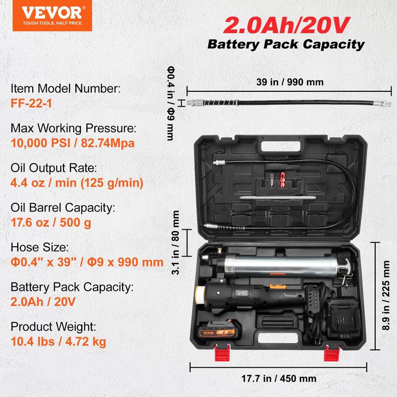 • Smart Battery Management: The grease gun comes with a top-notch 20V 2.0Ah battery and a speedy charger, so you'll never be caught powerless. Plus, they provide real-time battery level information, eliminating concerns about running out of power and ensuring uninterrupted work.