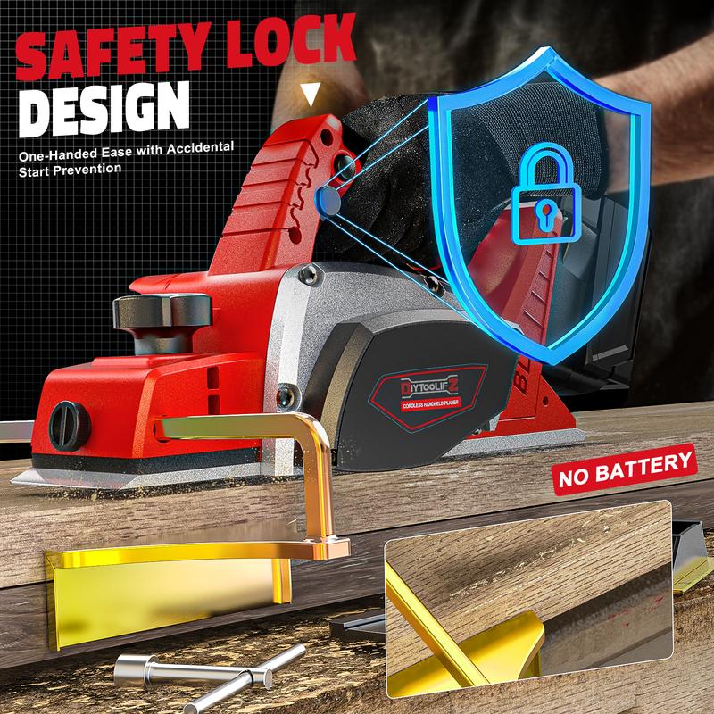 ·Safety Switch: This electric power planer comes with a dual-switch safety feature, ensuring it only operates when you press both the on/off switch and the safety switch simultaneously. This smart design helps prevent accidental starts, keeping you safe and protecting the tool from unintentional damage.
