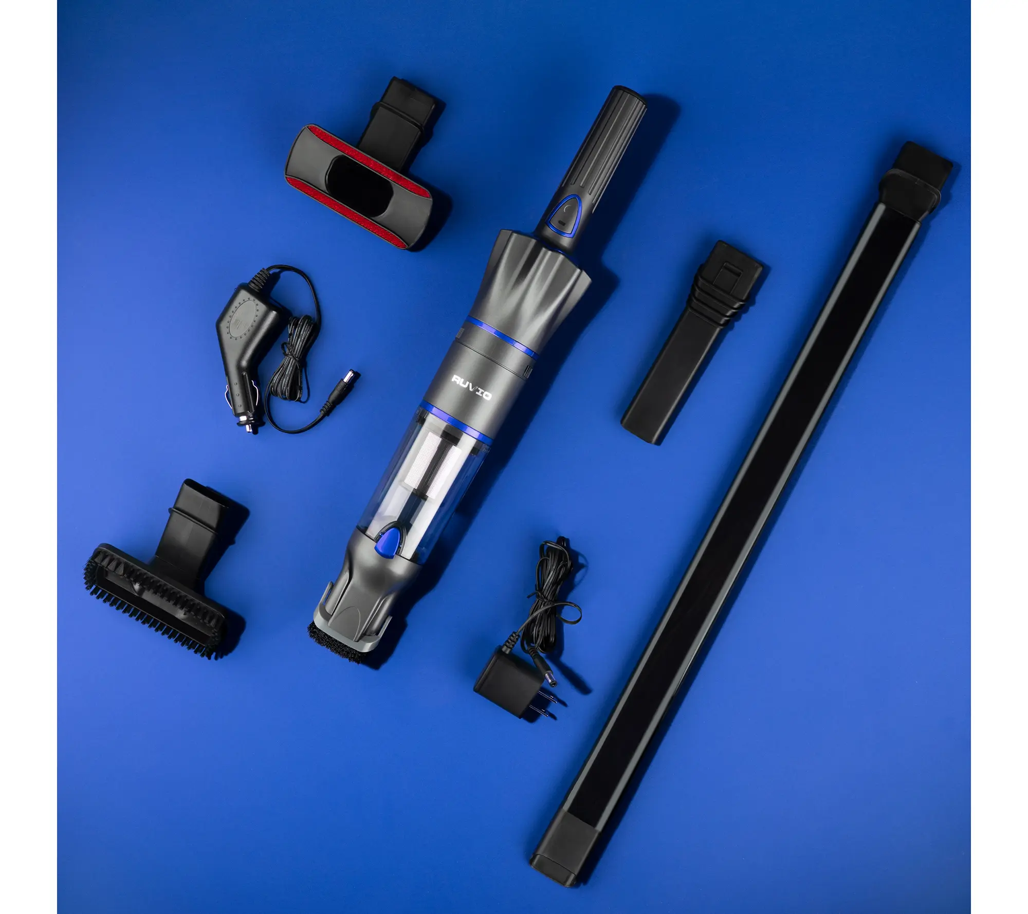 Change the way you clean with the Ruvio Pro cordless handheld vacuum. This powerful, portable vac is the tool you need to clean hard-to-reach places and tight in-between spaces. With four nozzle attachments, you can easily maneuver around your home, inside your car, RV, or boat, or just about anywhere you need dirt and debris to disappear. From Ruvio.