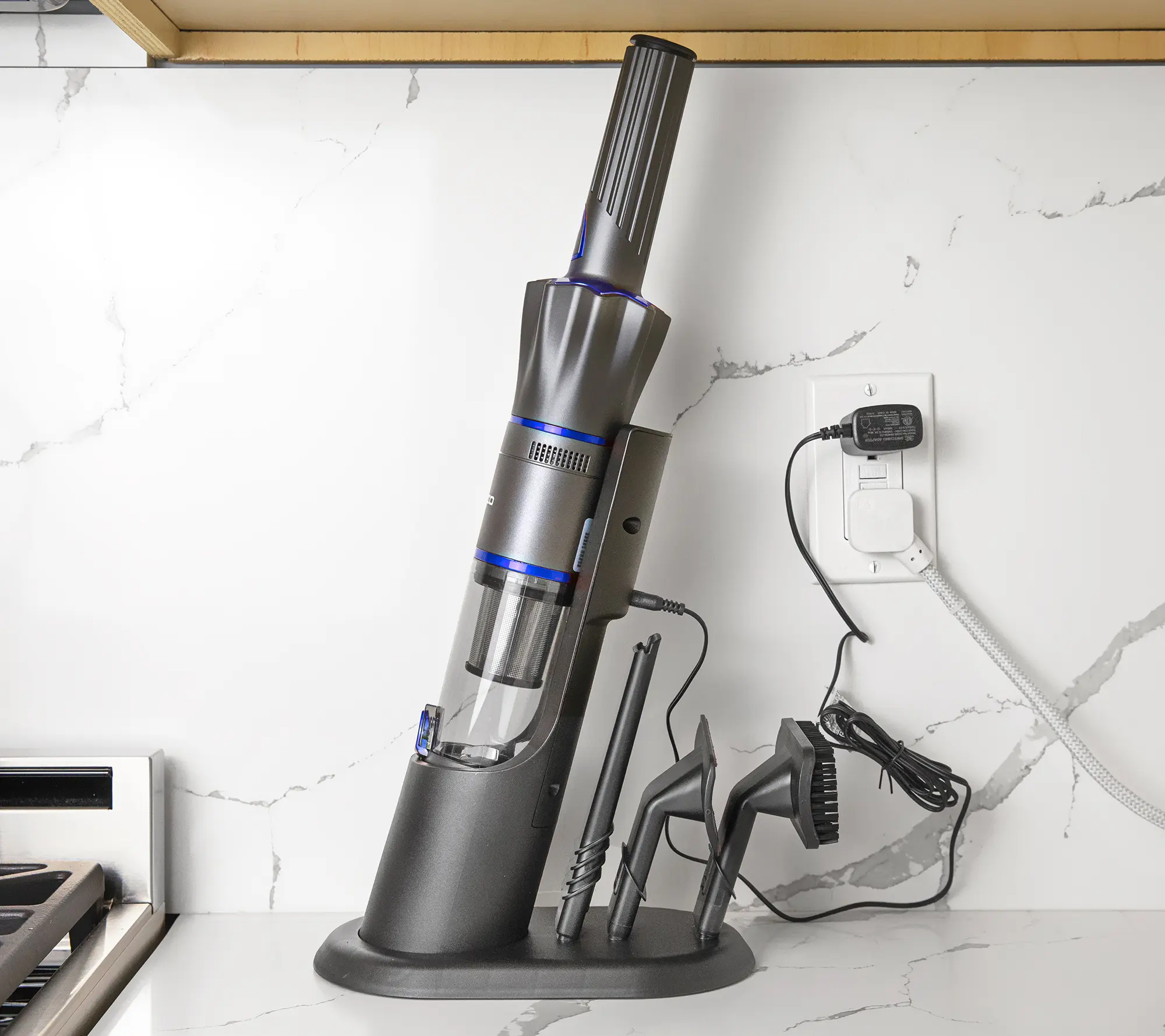 ·Includes cordless handheld vacuum, charging station, 23" flexible nozzle, 6" tapered crevice nozzle, brush nozzle, and upholstery nozzle