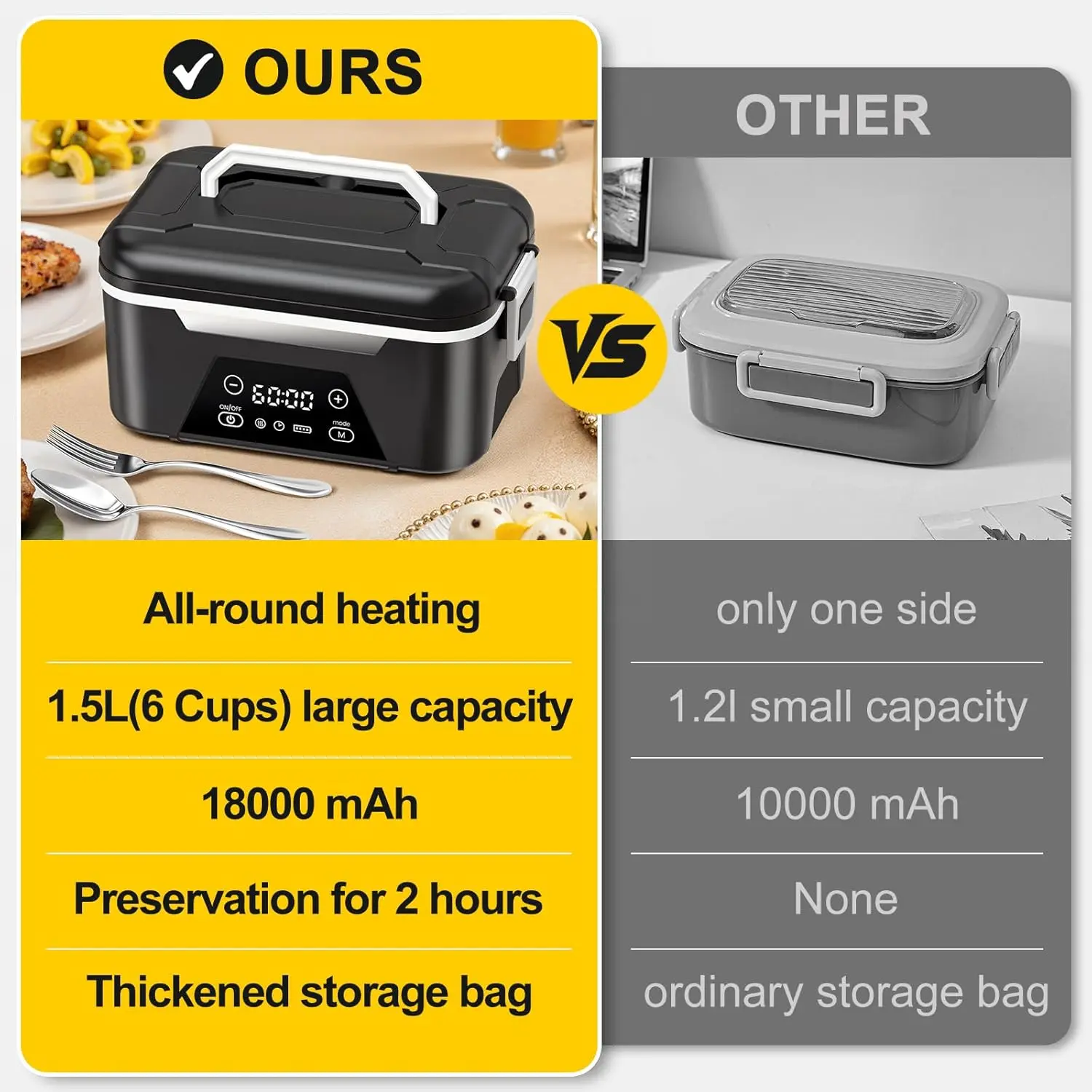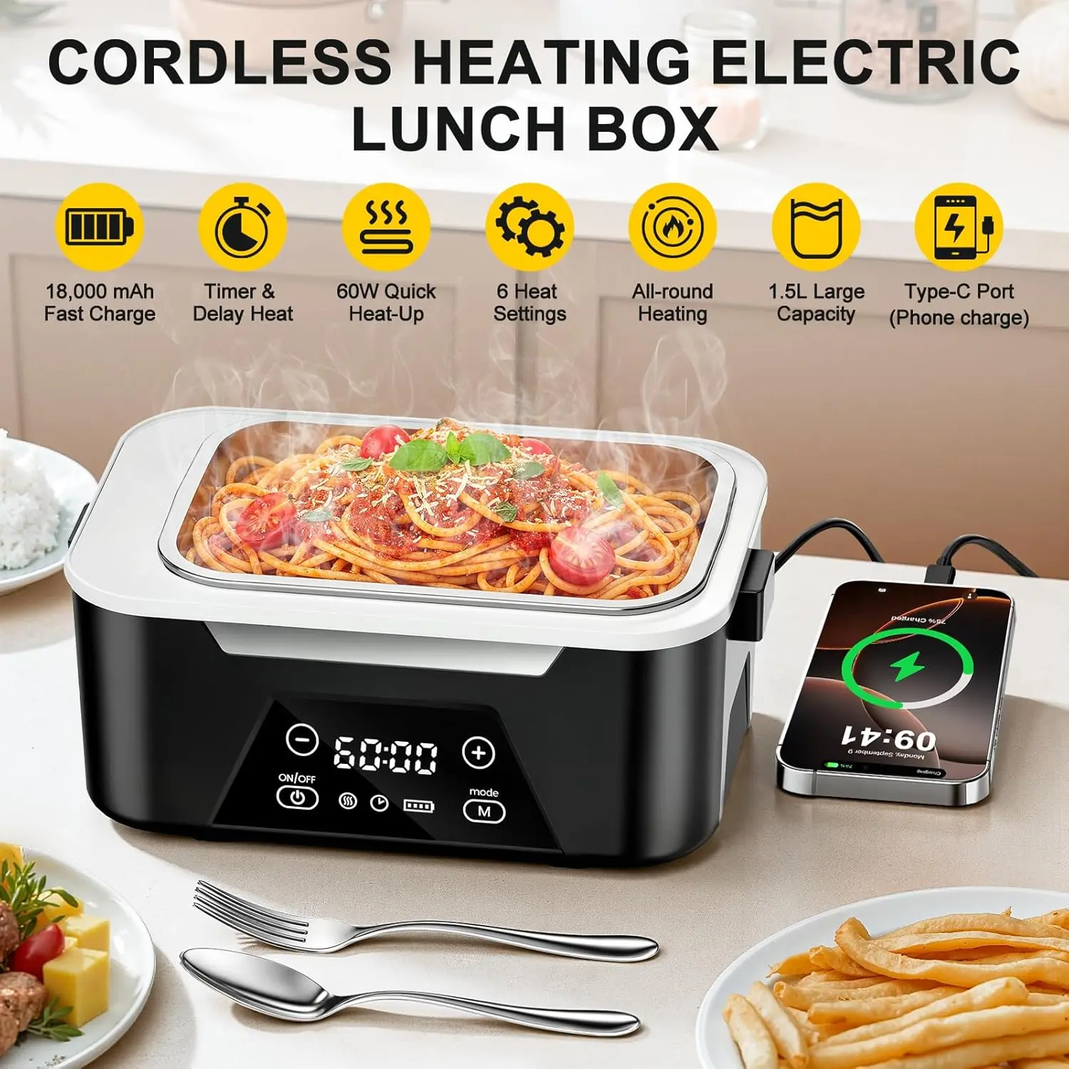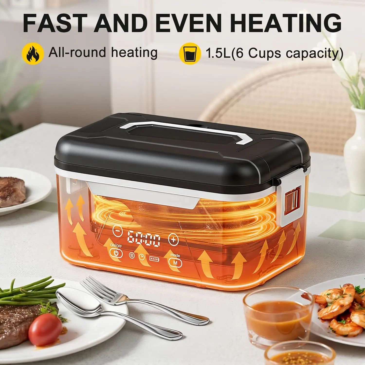Cordless Heated Lunch Box For Adults, 1.5L (6 Cups) Rechargeable Electric Lunch Box Battery Powered With Scheduled Heating, Automatic Heating,Portable Food Warmer With Insulated Bag (Black)Cordless Heated Lunch Box For Adults, 1.5L (6 Cups) Rechargeable Electric Lunch Box Battery Powered With Scheduled Heating, Automatic Heating,Portable Food Warmer With Insulated Bag (Black)Cordless Heated Lunch Box For Adults, 1.5L (6 Cups) Rechargeable Electric Lunch Box Battery Powered With Scheduled Heating, Automatic Heating,Portable Food Warmer With Insulated Bag (Black)