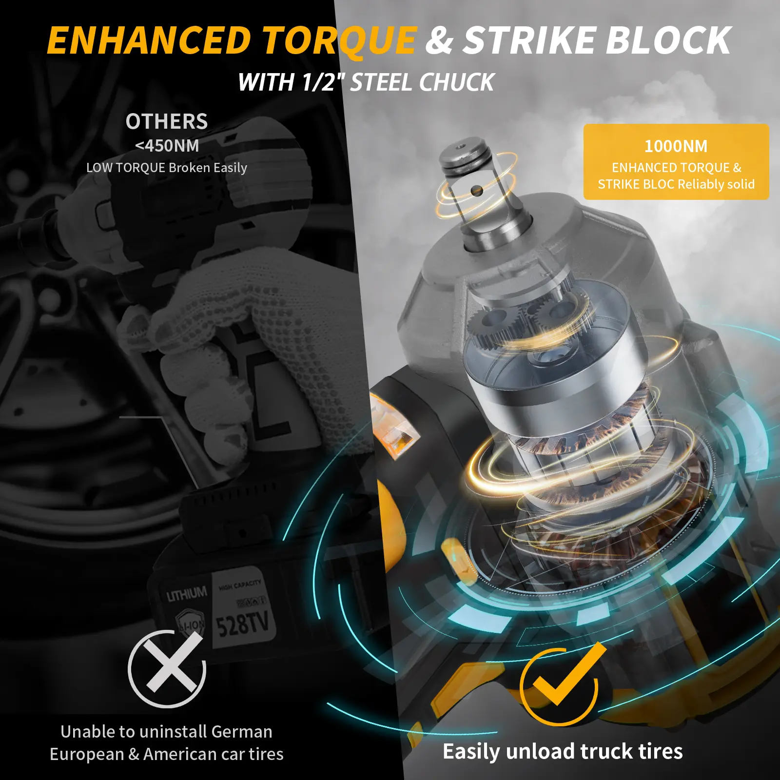 🛠️ Suitable for: Regular vehicle maintenance and medium-duty applications. May not be ideal for heavily rusted bolts, industrial use, or extreme high-torque demands. Performance may vary depending on bolt condition, battery level, and selected mode.