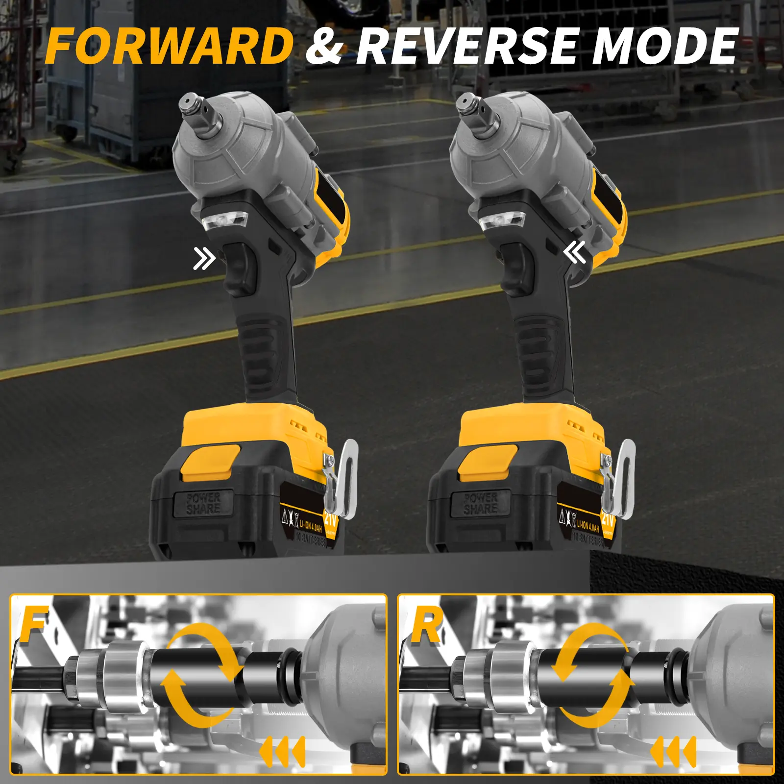 🔄 Efficient Operation: Forward and reverse modes allow for efficient tightening and loosening of bolts, while the reverse brake function helps reduce sudden movement for improved control and safety.
