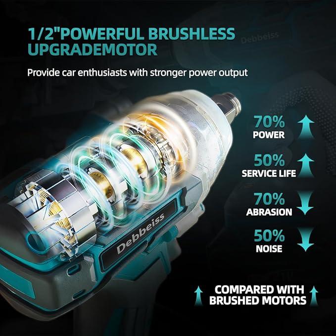 ·【High Torque and Brushless Motor】The impact wrench has high torque characteristics and the impact frequency can reach 1660r/min, making it a powerful assistant for tightening operations. The electric impact wrench has a wide range of uses and a complete range of tools. It can be used to remove car tires, assemble furniture, install scaffolding, car repairs, DIY projects, etc.