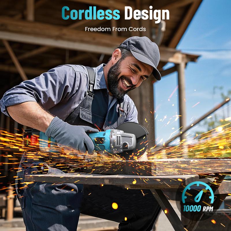 ·2 Pcs 4.0ah Large Capacity Battery:The battery powered angle grinder comes with 2x4.0ah high capacity battery,which can hold a charge for a significate amount of time. In addition, our batteries are compatible with Makita tools. If you have Makita tools in hand, this cordless electric grinder will be beneficial for you to use your tools to the fullest extent possible