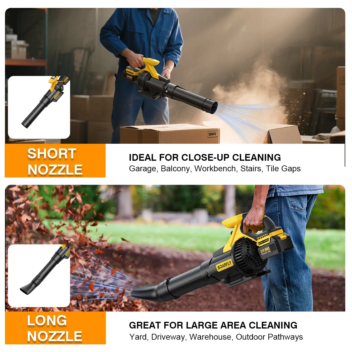 SOARFLY Cordless Leaf Blower – Powerful & Efficient Cleaning!