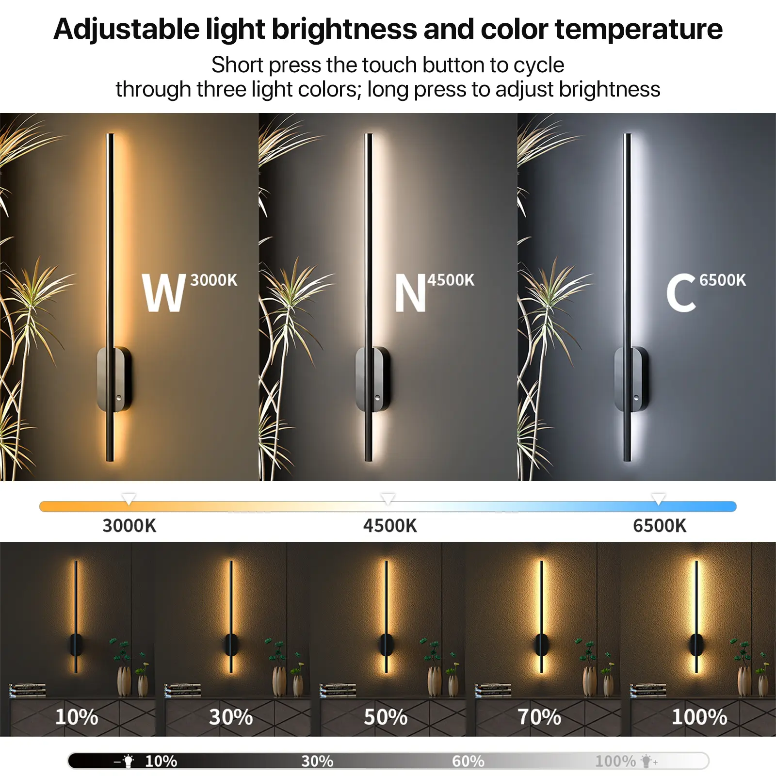 ·Adjustable Brightness & Color Temperature: Customize your ambiance with ease. Short press the touch button to cycle through three color temperatures (3000K Warm White, 4500K Natural White, 6500K Cool White). Long press to smoothly dim or brighten the light from 10% to 100% to suit any mood or task.