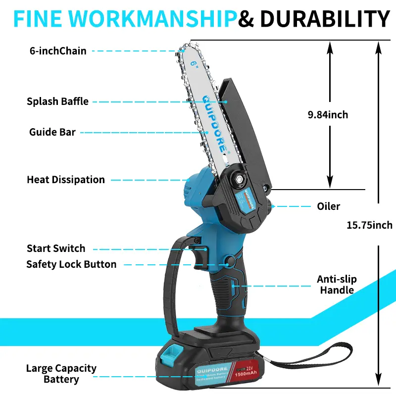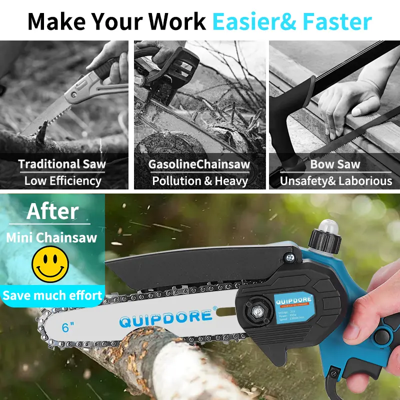 The chainsaw was ok for very thin limbs but the blade got stuck in the medium size limb . I was able to get it out but it stopped cutting at all. I would not recommend if its a medium size branch