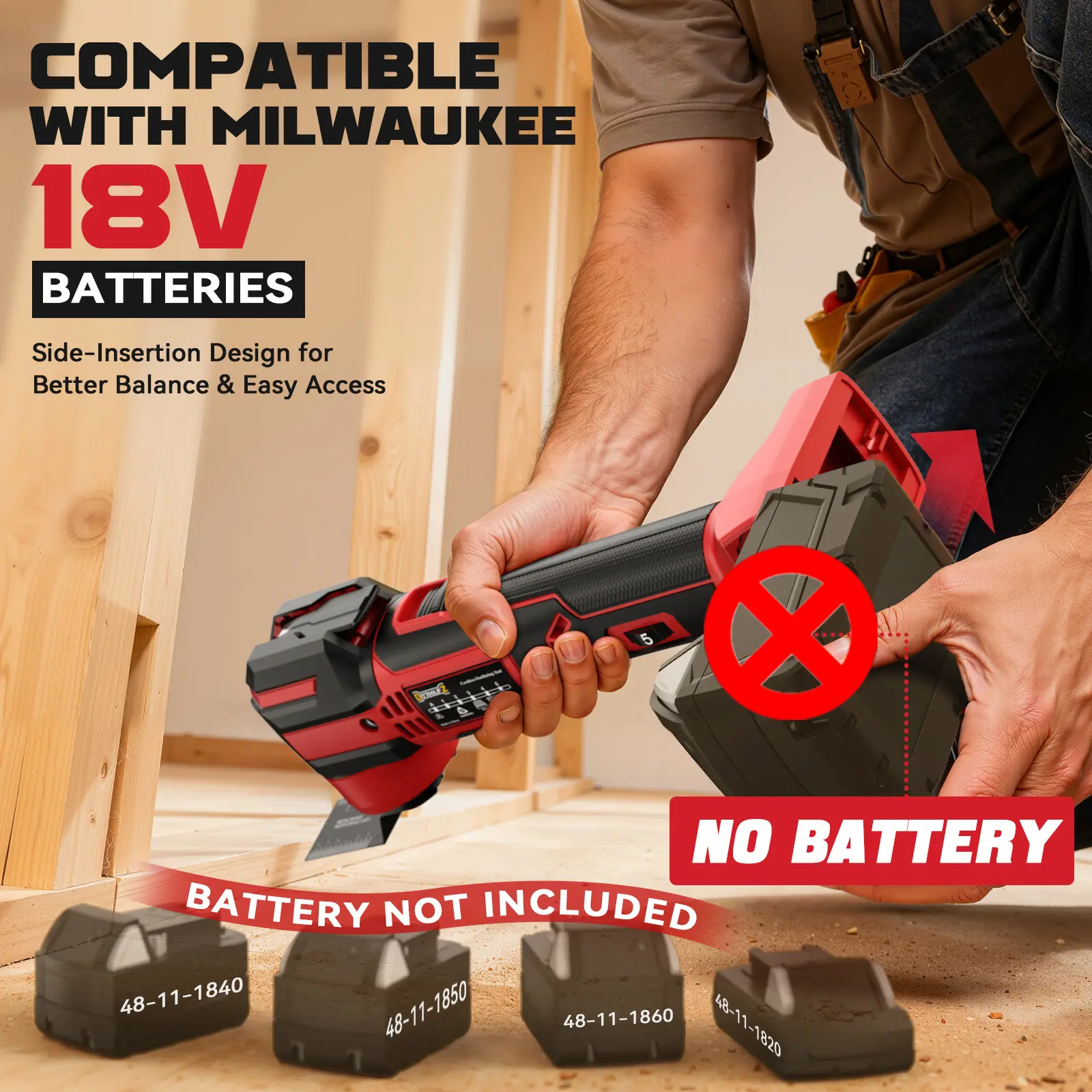 ·NOT INCLUDE any batteries. It is compatible with Milwaukee 18V batteries. It is just a bare tool.