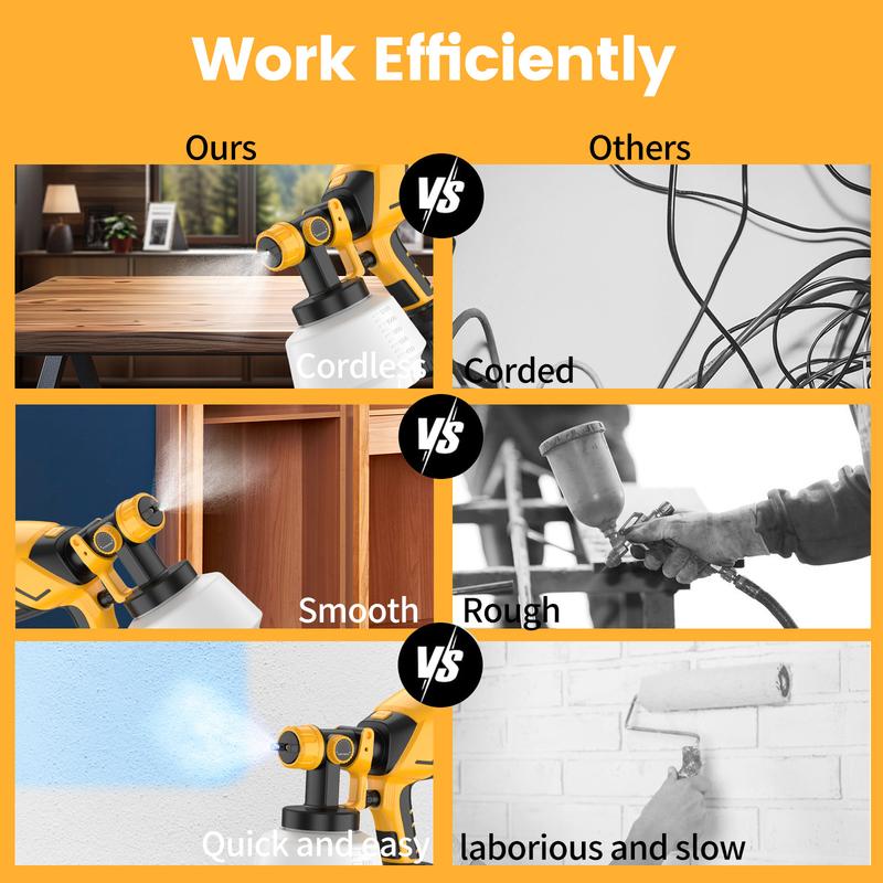 【2025 NEW UPGRADES】Our 2025 version of the Paint Sprayer is equipped with a rugged 750W brushless motor that provides superior performance and reduces overheating at high speeds up to 42,000RPM.