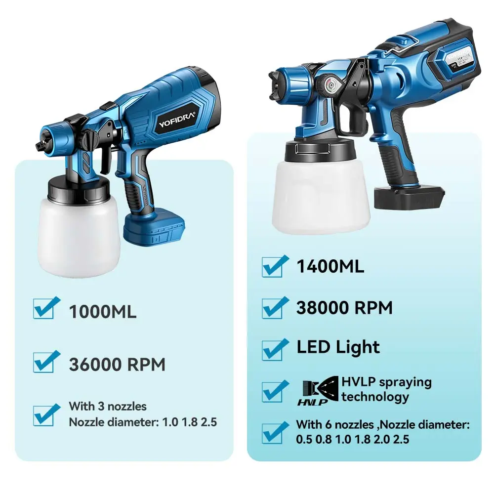 Easy to Clean: Whether you're a beginner or a professional, you can disassemble and clean this cordless paint gun in a matter of minutes. Besides, it comes with a 1-year warranty so you can contact us ASAP if you have any problems.