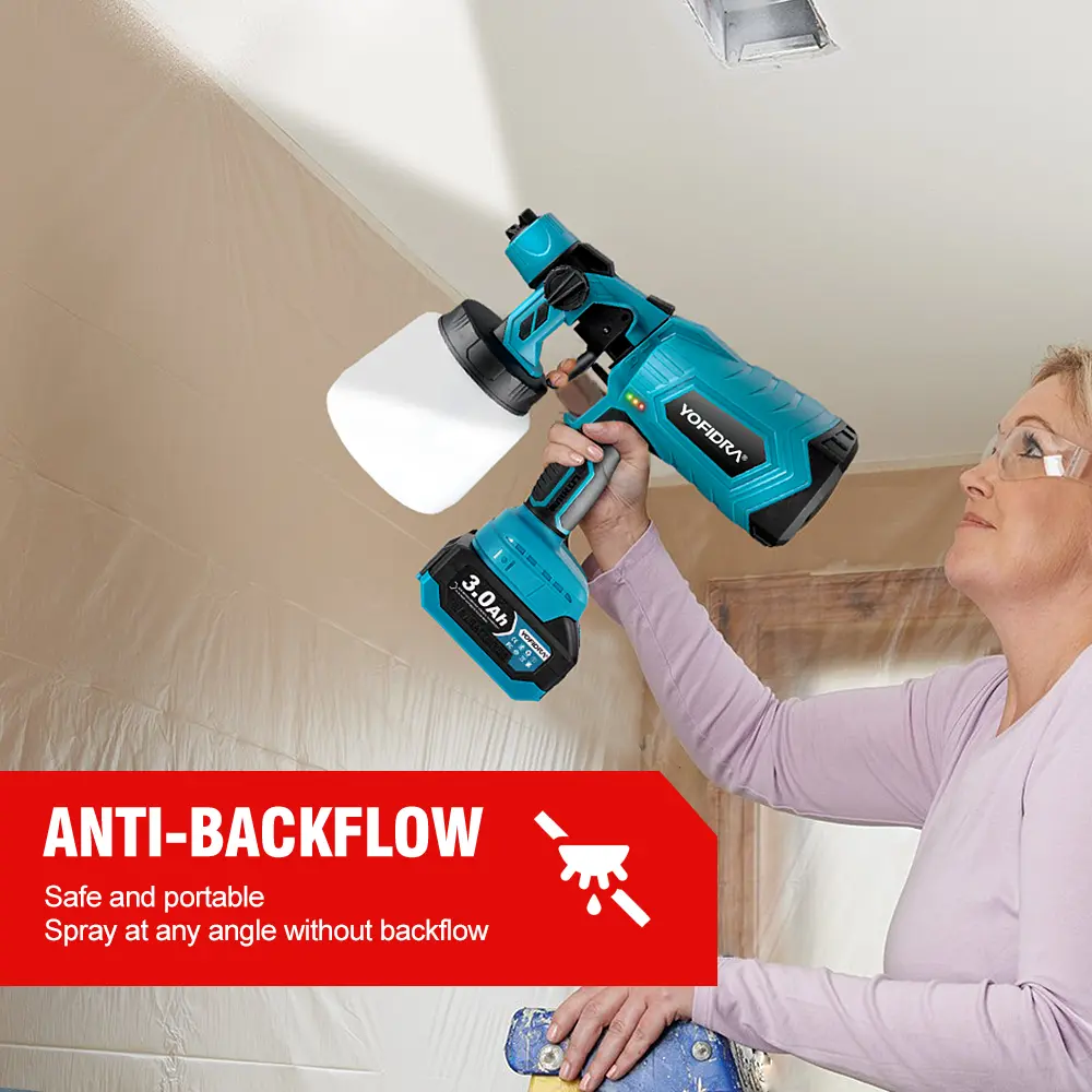 Cordless & Effortless: The cordless paint sprayer comes with 21V 2*3.0Ah rechargeable batteries that provide long-lasting power, enabling you to complete large painting projects.