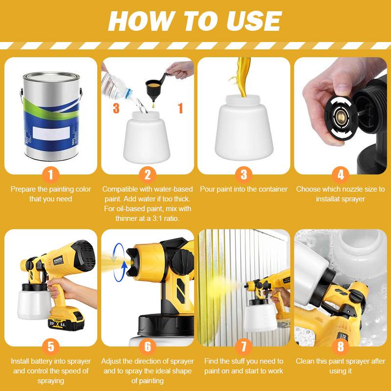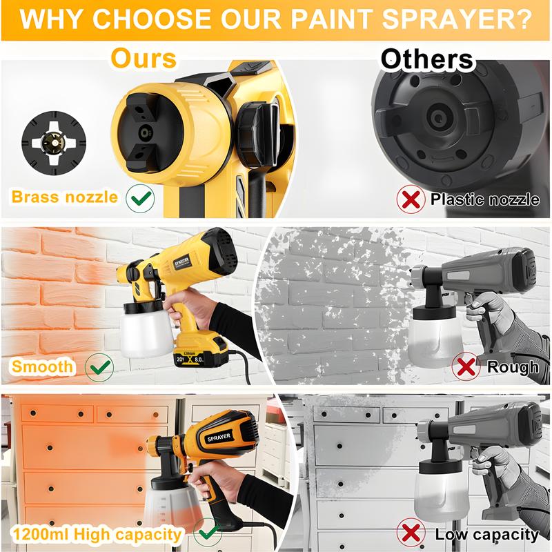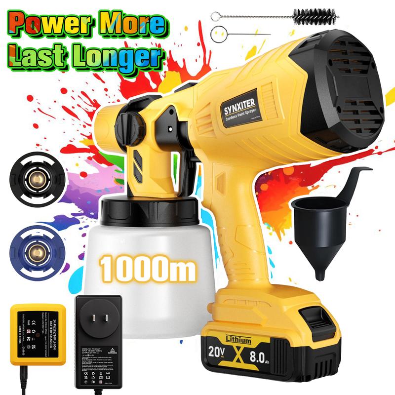 【HLVP Cordless Paint Sprayer】Operating at 30,000 RPM with a 1000ML container,boosts painting efficiency;Its adjustable flow control suits different tasks,offering a faster,more convenient alternative to rollers and brushes