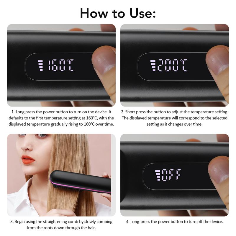 【Convenience】: Experience freedom with our cordless straightening brush, allowing for effortless styling without being tethered to a power outlet.